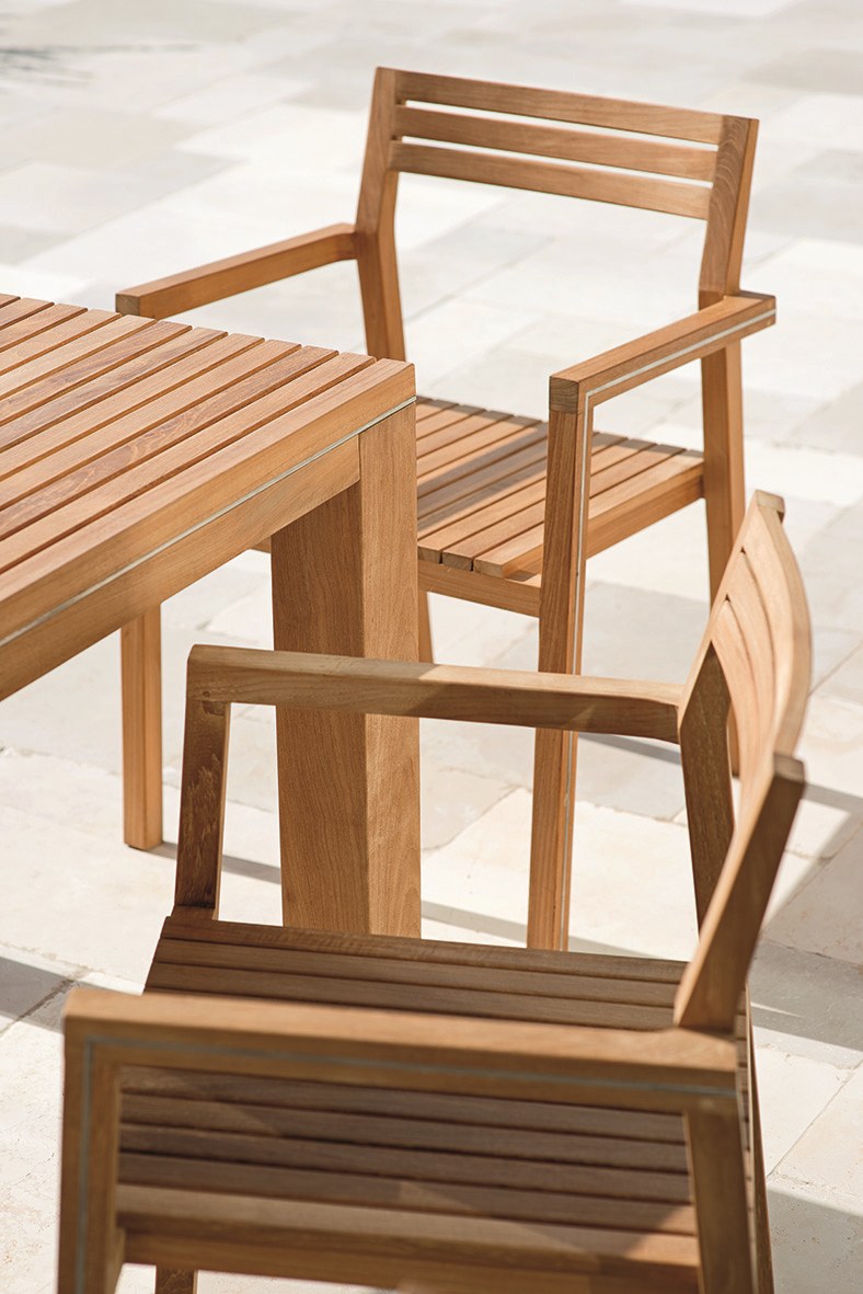 Essenza — удобный стул с подлокотниками, изготовленный из тикового дерева. Модель может быть дополнена мягкими подушками. Дополнительно можно приобрести чехол от дождя. В коллекцию Essenza входят стол, стул, двухместный и одноместный шезлонги. Более подробную информацию можно уточнить у менеджера.