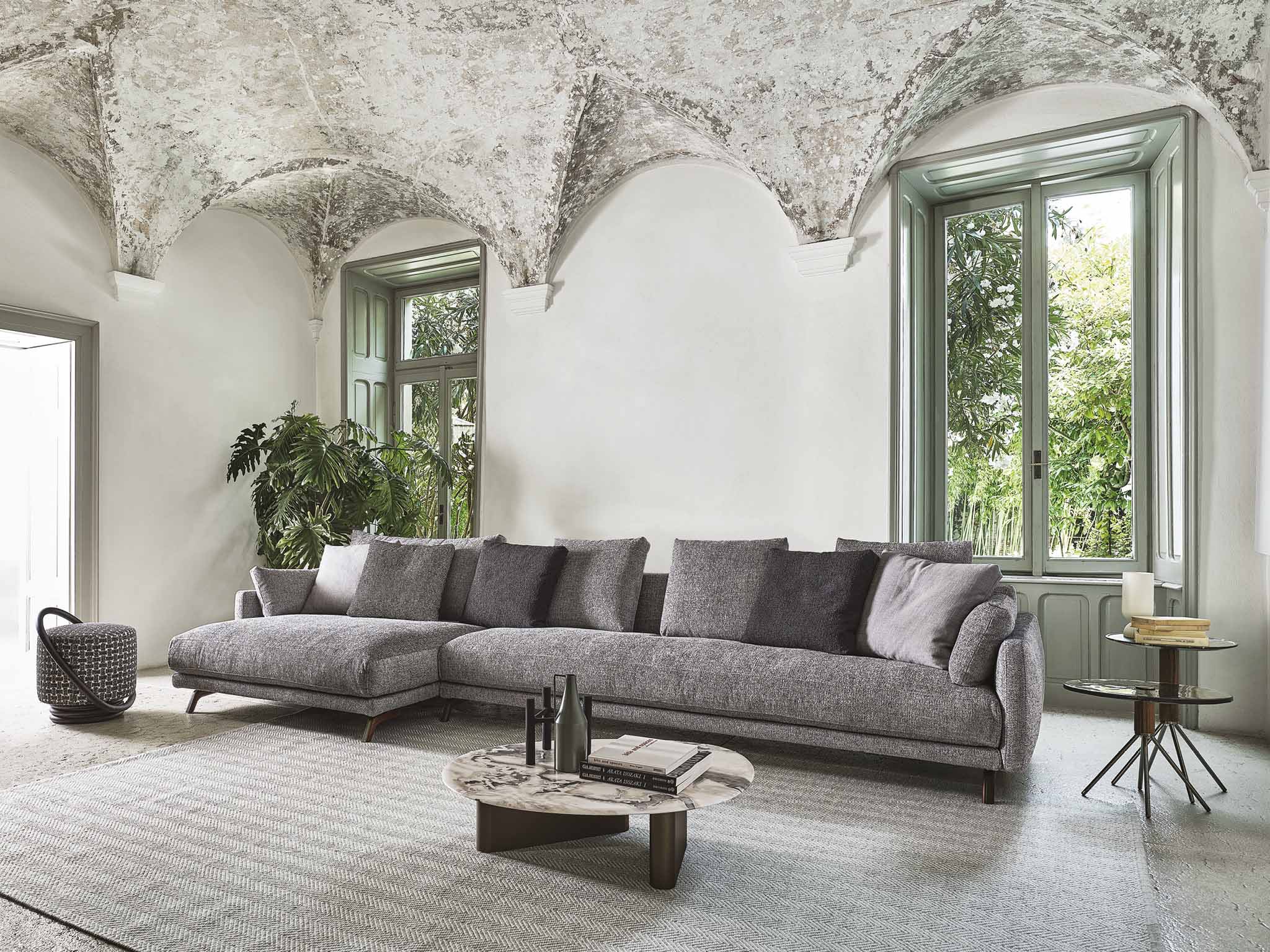 Сиденья диванов Etienne оснащены прочным металлическим каркасом, который поддерживает удобные и надёжные ремни для фиксации. Обивка выполненная из технического бархата, славится своей долговечностью и устойчивостью к износу. Это гарантирует сохранение привлекательного внешнего вида на протяжении долгого времени. Подушки сидений с пенополиуретаном разной плотности идеально упруги и сохраняют форму даже при активном использовании. Верхняя часть подушек из мягкого и приятного на ощупь материала Microflock. Этот уникальный материал состоит из 100% переработанного полиэстера, что делает его экологически чистым выбором.