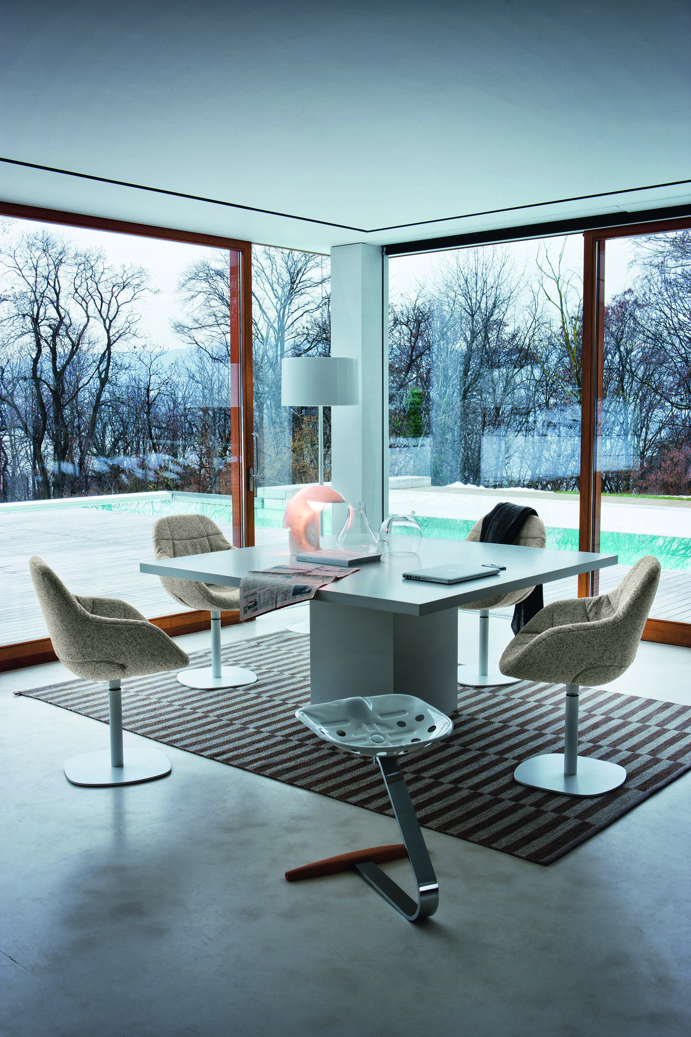 Стул Eva 2269/R имеет поворотное основание выполненное из стали, хромированной или окрашенной в белый, черный или серый цвет. Корпус стула выполнен из интегрального ППУ (монолитный материал с плотной поверхностью) и дополнительно усилен стальной вставкой. Доступна версия в обивке из кожи, экологичного заменителя кожи или текстиля. Возможны различные варианты моделей. Подробнее о данной модели уточняйте у менеджеров или в PDF инструкции.