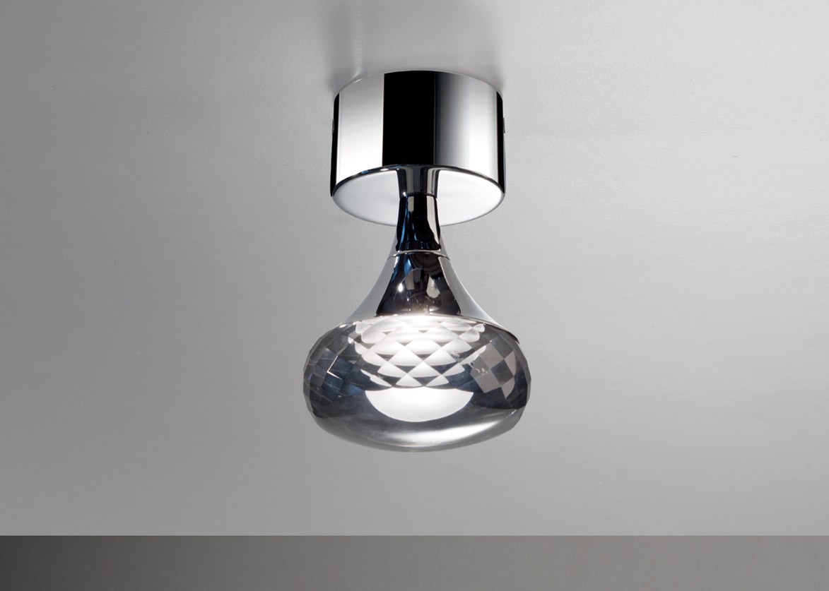 Коллекция светильников, выполненных в хромированной алюминиевой отделке. Предлагаются подвесные, потолочные, полу-встраиваемые версии, а также бра. Особенностью данных светильников является красивый стеклянный рассеиватель, украшенный гранями, создающими переливы и отблески. Он доступен в янтаре или дымчатом цвете. Светодиодные источники света сэкономят электроэнергию и создадут отличное освещение.nn