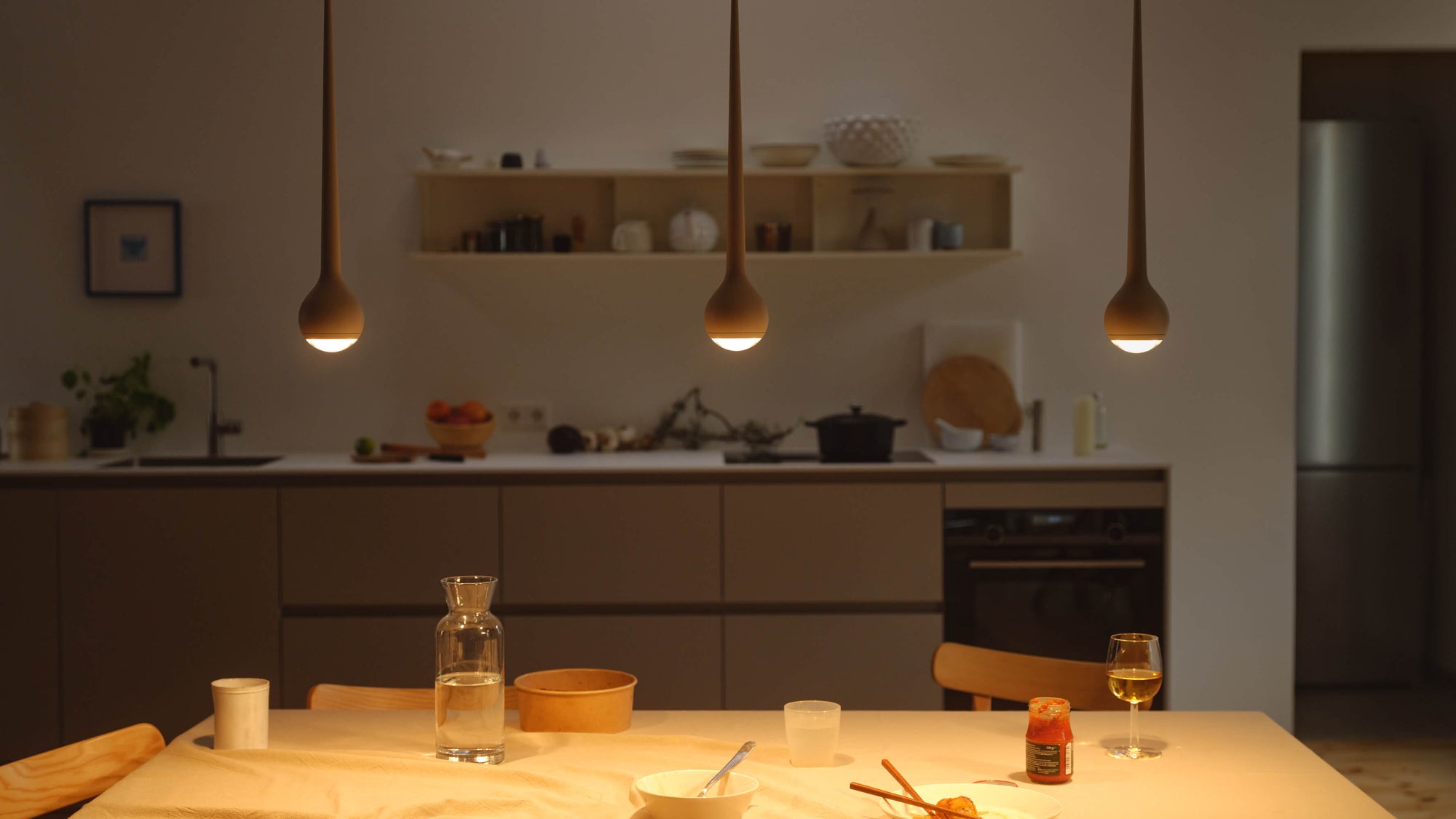 В серии Falling Sun Trace представлены модели с разным количеством ламп. Вариант с двумя лампами отлично подойдёт для небольших пространств — например, над рабочим столом или в уголке для чтения. Версия с тремя лампами обеспечит сбалансированное освещение в гостиной или спальне среднего размера. Модель с четырьмя лампами создана для просторных помещений: она даёт интенсивный, но мягкий свет, равномерно заполняя большие площади — например, открытые гостиные‑столовые или кабинеты.