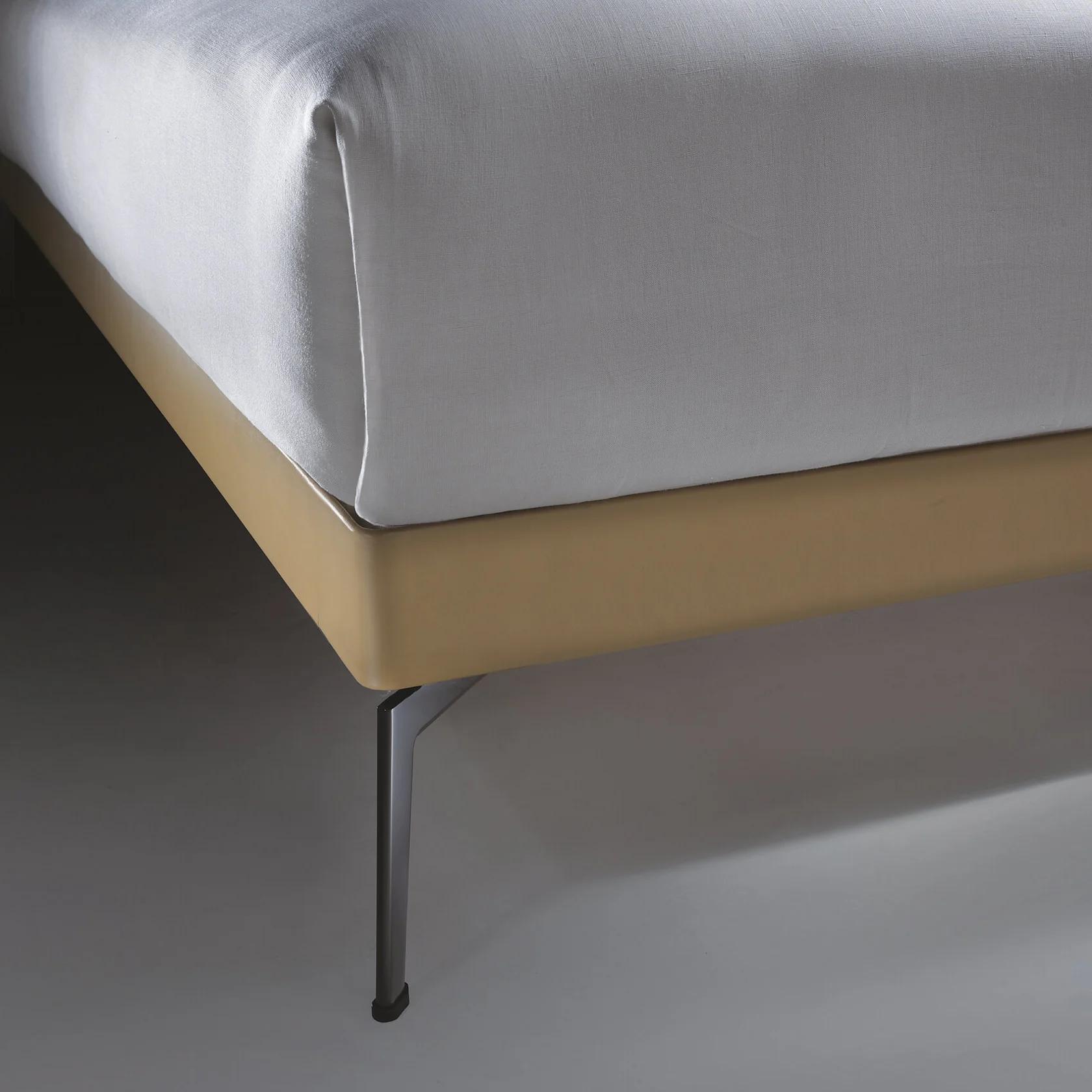 Изящные ножки из литого под давлением металла приподнимают кровать над полом, придавая ей лёгкость и воздушность. Ножки выполнены по эксклюзивному проекту и предлагаются в разных вариантах отделки. Их также можно обтянуть кожей, чтобы создать единый стиль с основанием кровати.