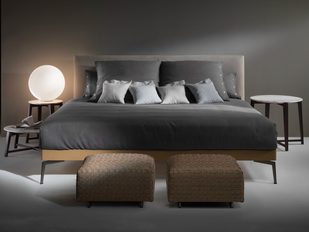 Основание кровати по периметру обтянуто толстой кожей в модели Feel Good или тканью или тонкой кожей в модели Feel Good Ten. Это придаёт кровати изысканный и завершённый вид.
