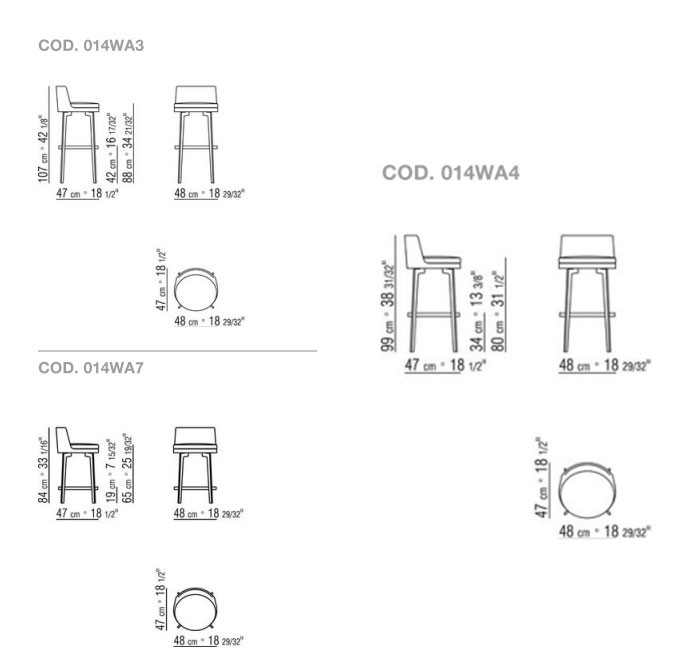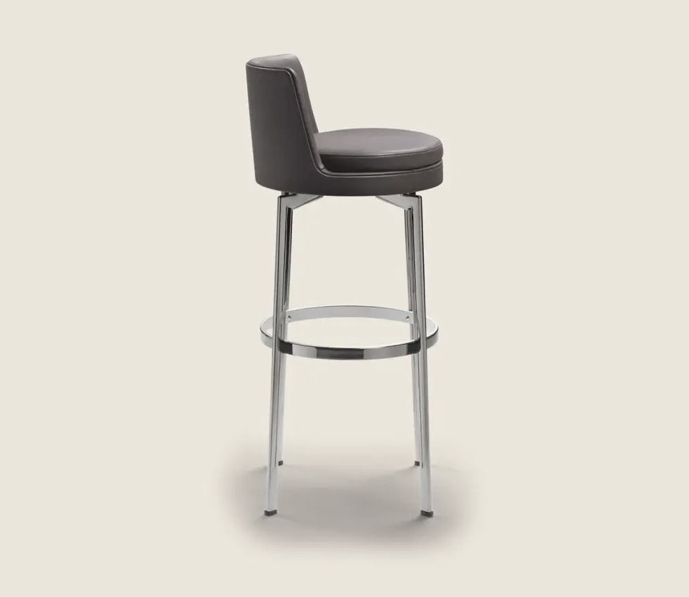 Особое внимание привлекают изящные алюминиевые ножки табуретов. Их дизайн разработан специально для этой коллекции и представлен в нескольких элегантных вариантах отделки. Металлические варианты включают шесть видов покрытий: от благородного сатина до ультрасовременного матового титана. Деревянные модели выполняются из ценных пород – ореха, ясеня и дуба с богатым выбором тонировок.