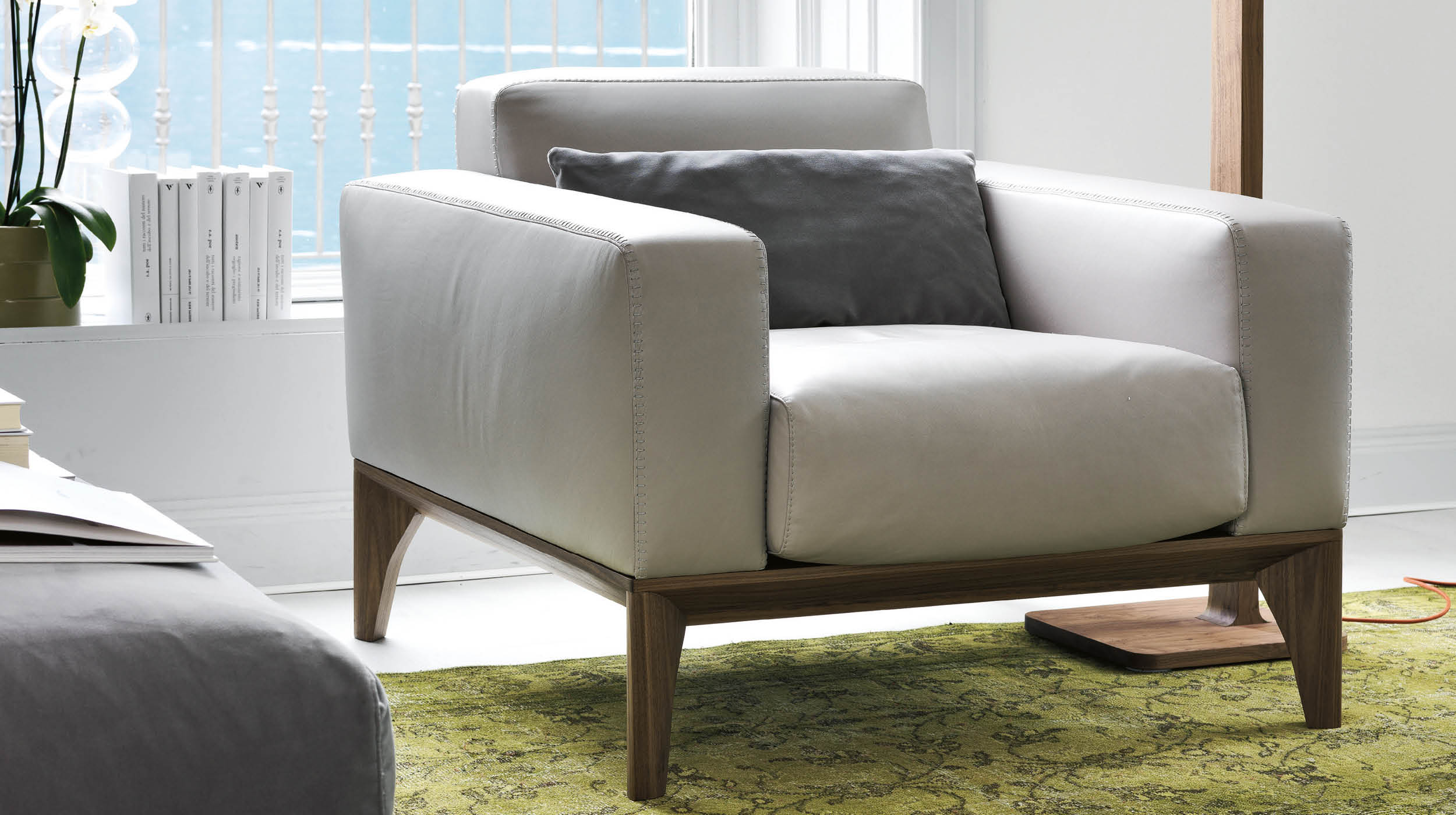 Дизайн кресла Fellow poltrona отличается лаконичностью и изяществом форм. Мягкие линии и гармоничные пропорции создают атмосферу уюта и спокойствия. Особое внимание уделено деталям. Рельефная строчка украшает края подушек, подлокотники и спинку. Это придаёт креслу изысканность и утончённость. Декоративная строчка не только украшает изделие. Она подчёркивает его высокое качество. Строчка объединяет все элементы в единый, цельный образ.