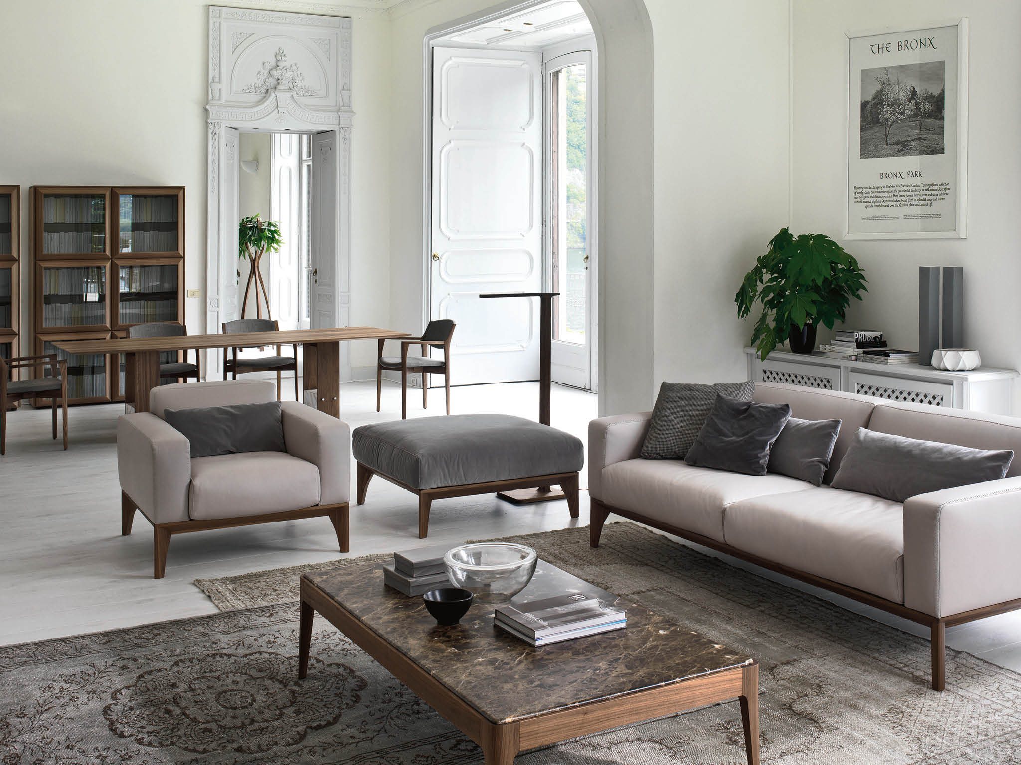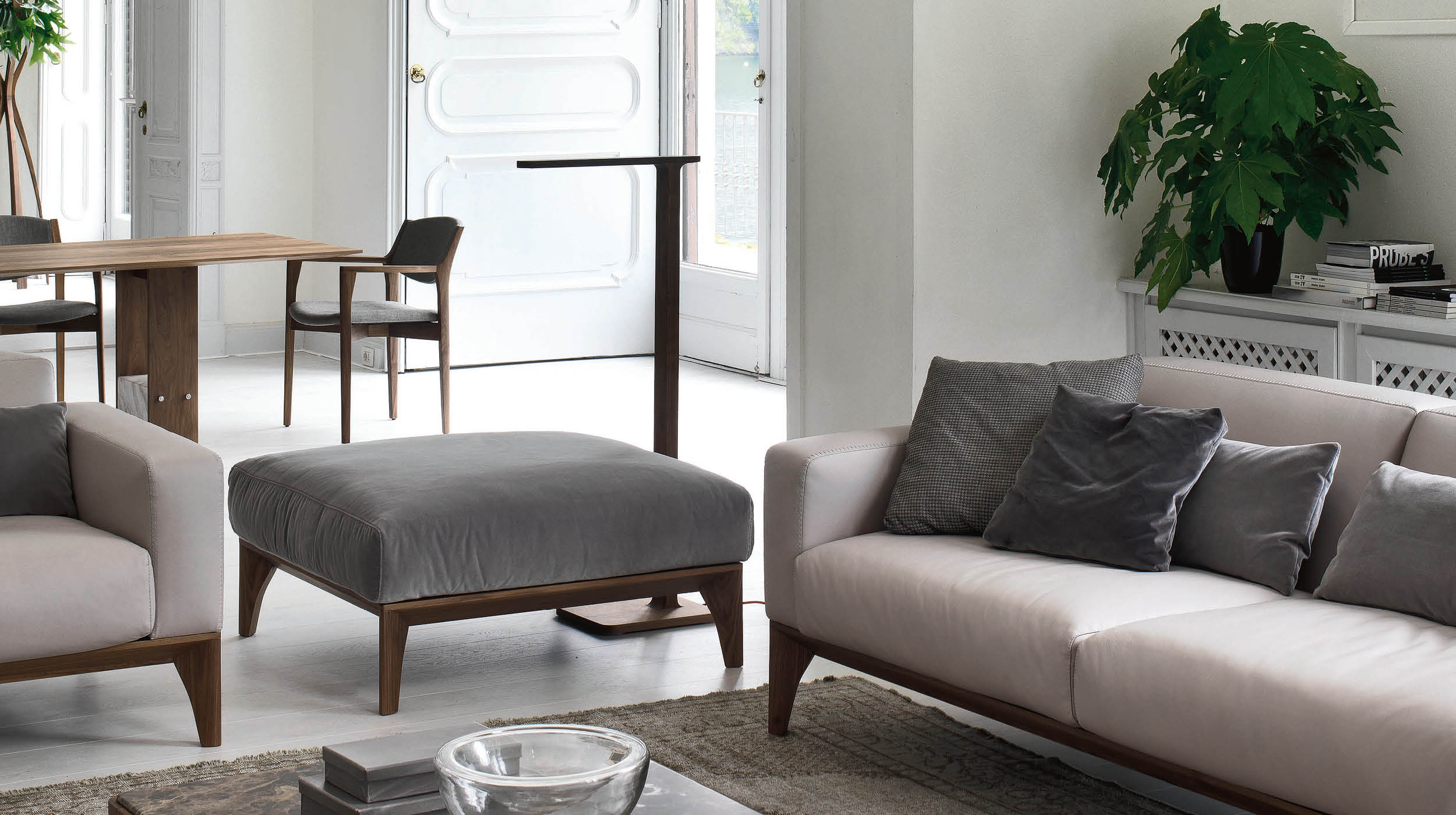 Линия Fellow выделяется своими лаконичными пропорциями и мягкими, плавными формами. Рельефная строчка, украшающая края подушек сиденья, спинки, подлокотников и мягкую основу пуфа, придаёт изделию утончённый вид и подчёркивает мастерство исполнения. Этот декоративный элемент объединяет всю коллекцию, создавая ощущение целостности и гармонии.