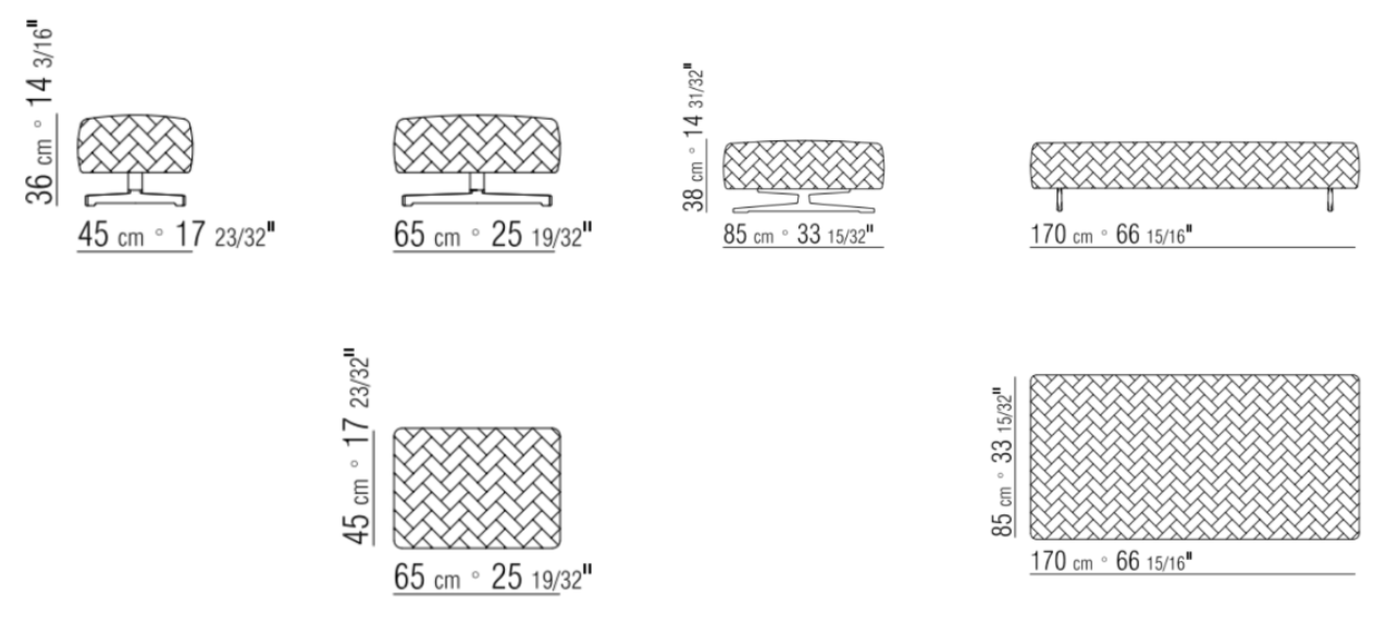 Гибкость использования делает Filicudi универсальным элементом декора. В просторной гостиной он может выполнять роль стильного акцента, дополняя ансамбль мягкой мебели. А в камерной обстановке спальни – служить удобной подставкой или самостоятельным предметом меблировки. Два варианта габаритов позволяют идеально вписать пуф как в классические, так и в современные интерьерные решения, сохраняя баланс между функциональностью и декоративностью.
