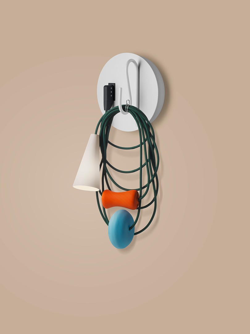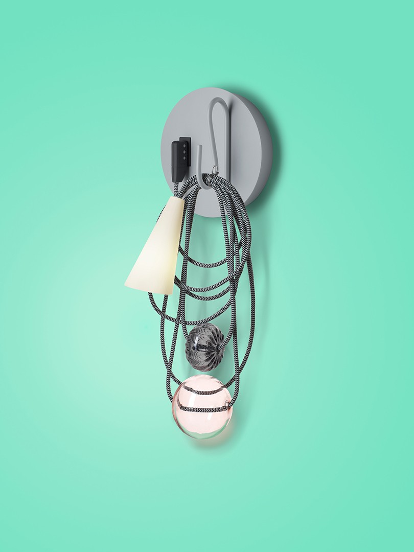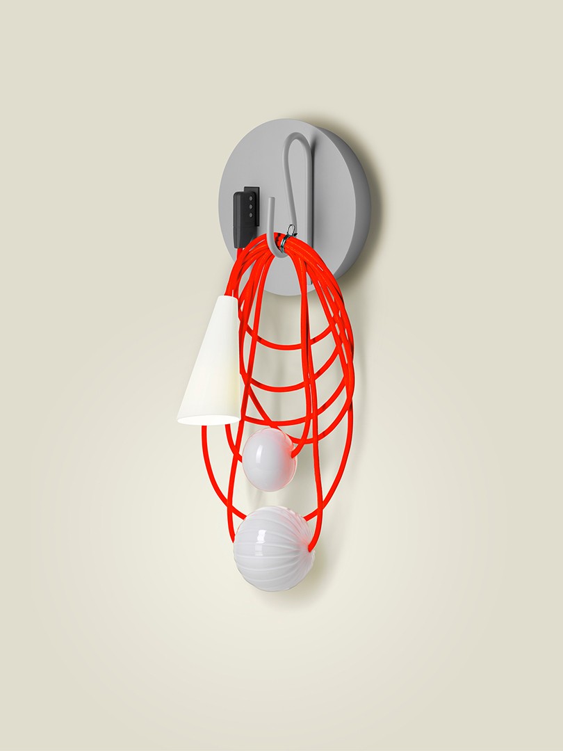 Настенный светильник Filo — это уникальное и эклектичное дизайнерское решение, которое бросает вызов традиционному представлению о светильнике. Вместо того чтобы скрывать электрический кабель, дизайнеры сделали его центральным элементом композиции. Светильник представляет собой композицию из длинного текстильного кабеля, который крепится к минималистичному металлическому основанию и украшен яркими декоративными стеклянными элементами. Filo обеспечивает направленное или рассеянное освещение в зависимости от конкретного варианта модели, фокусируясь скорее на декоративном эффекте, чем на заливке всего пространства светом.