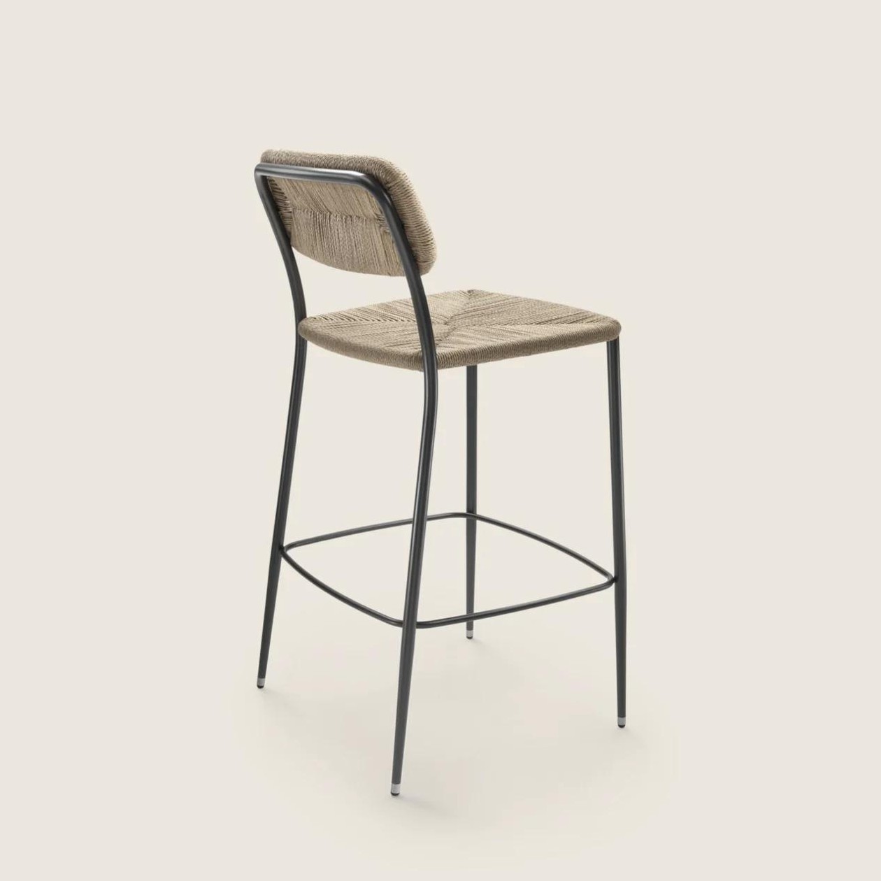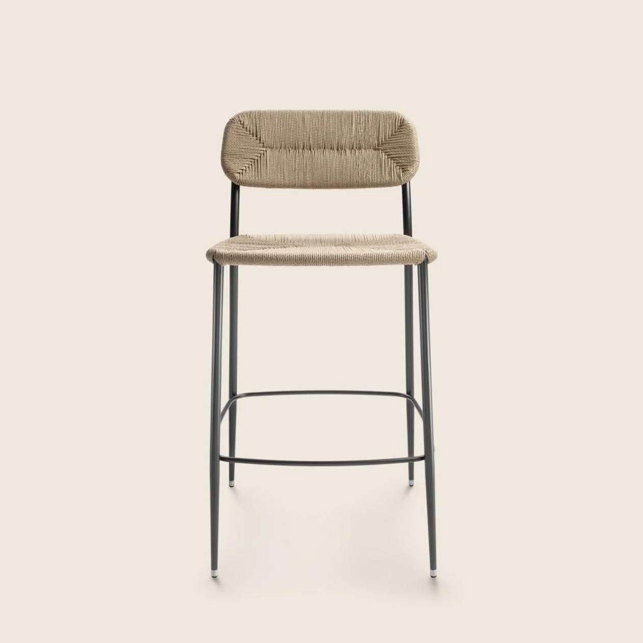 Сиденье и спинка табурета покрытые плотным плетением из бумажной бечёвки или осоки, добавляют изделию натуральности и экологичности. Бечёвка, сплетённая вручную, придаёт табурету особую текстуру и теплоту, создавая ощущение уюта и комфорта. Плетение из осоки, в свою очередь, придаёт изделию лёгкость и воздушность, что делает его идеальным для использования в различных интерьерах.