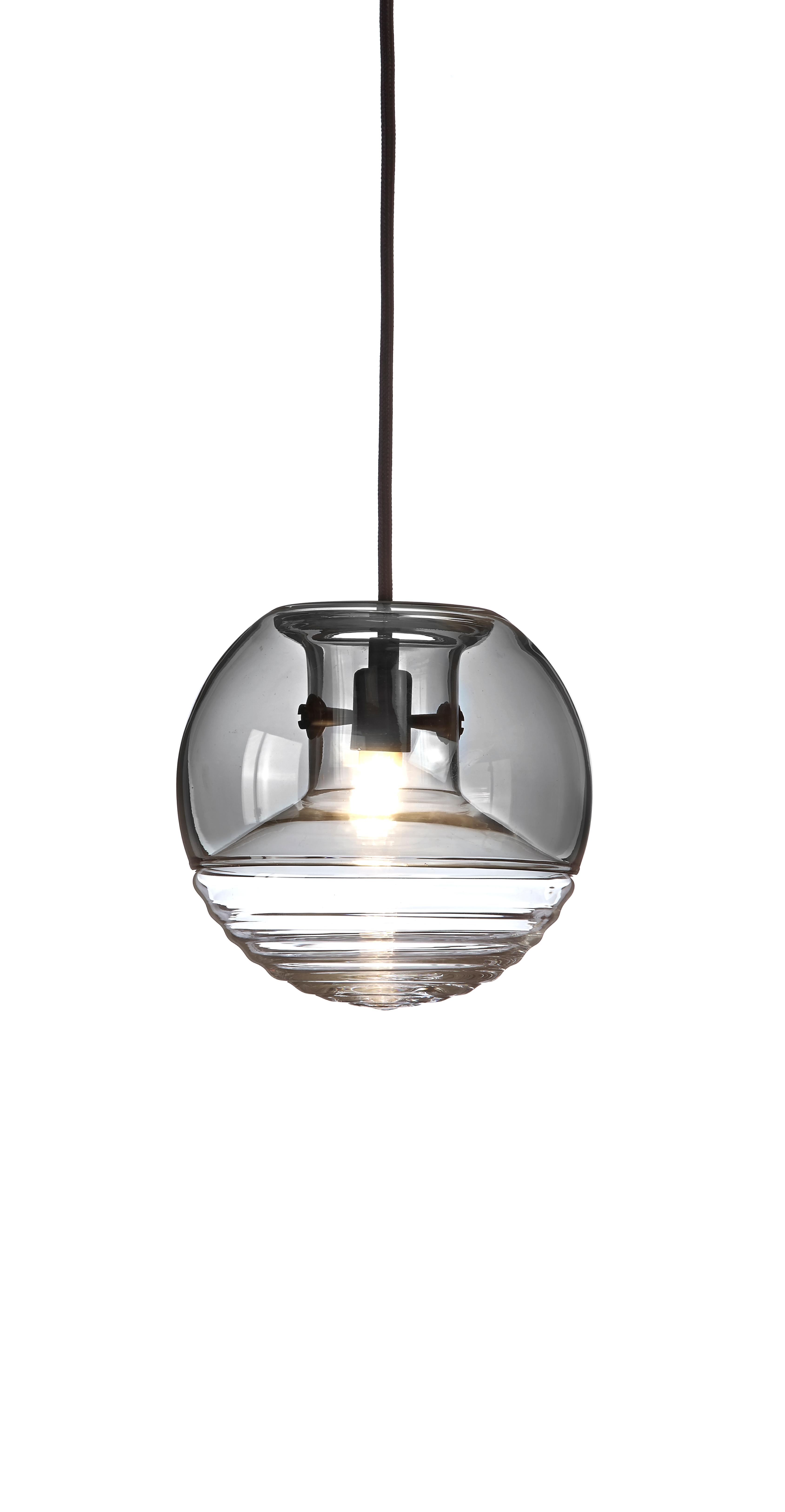 Светильник Flask Smoke выглядит как таинственный эксперимент химии, колба представляет собой сферический объект состоящий из двух компонентов, выдутых вручную, колба и капюшон. Ребристая и округлая база колбы преломляет свет, дающий теплый, волнистый свет, в то время как дымчатое стекло капюшона приглушает блеск и блики.n