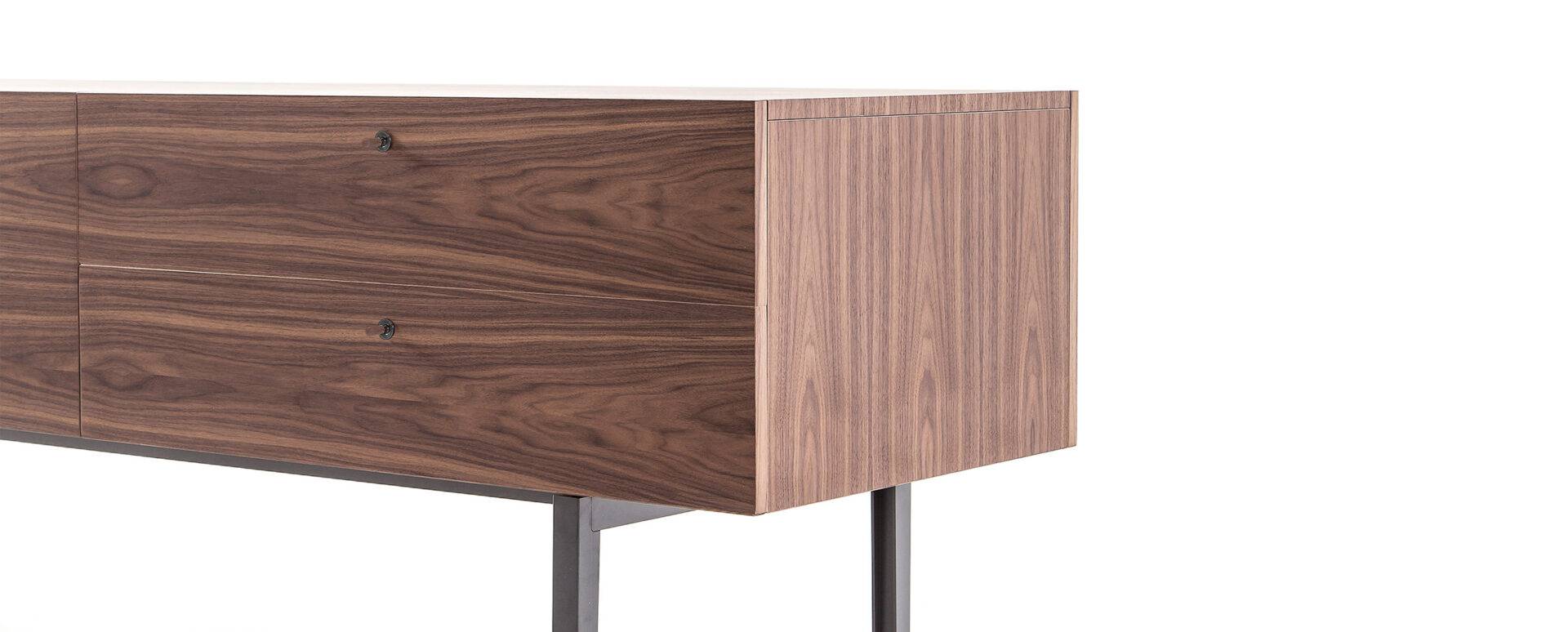 Комод для гостиной Flat итальянской фабрики Cassina — отличный функциональный вариант для интерьера в современном стиле. Его каркас может быть выполнен из темного окрашенного дуба или в лакированной отделке на алюминиевых ножках. Блоки комода можно расположить в ряд или установить их друг на друга. Комод может быть дополнен выдвижными ящиками и подносом для бутылок. Внутренняя сторона ящиков окрашена в черный цвет. Возможные варианты отделки столешницы: окрашенный в темный цвет дуб, пескоструйное или окрашенное в белый цвет стекло или белый Каррарский мрамор. Маленькие ручки сделаны из анодированного алюминия. Более подробную информацию можно уточнить у менеджера.
