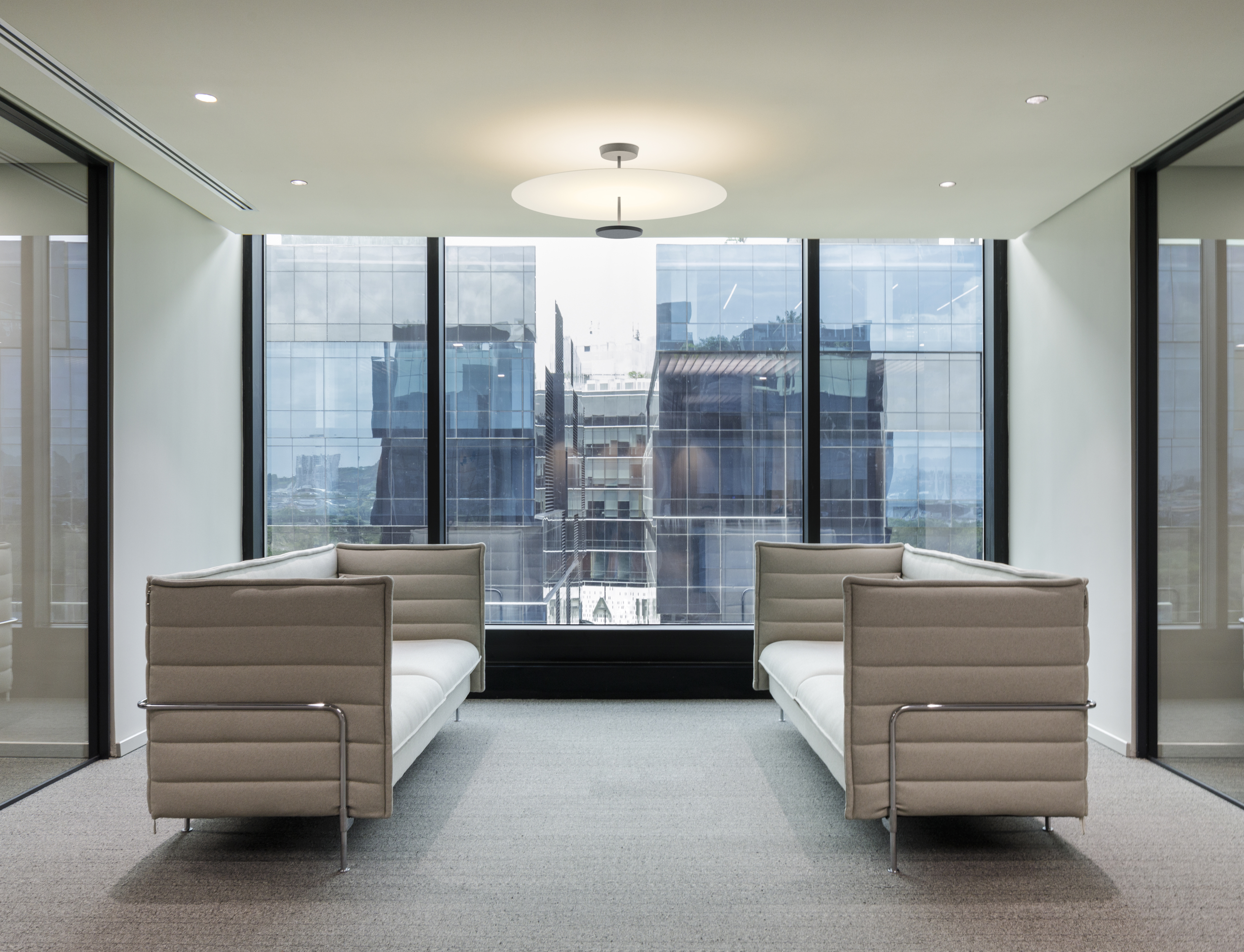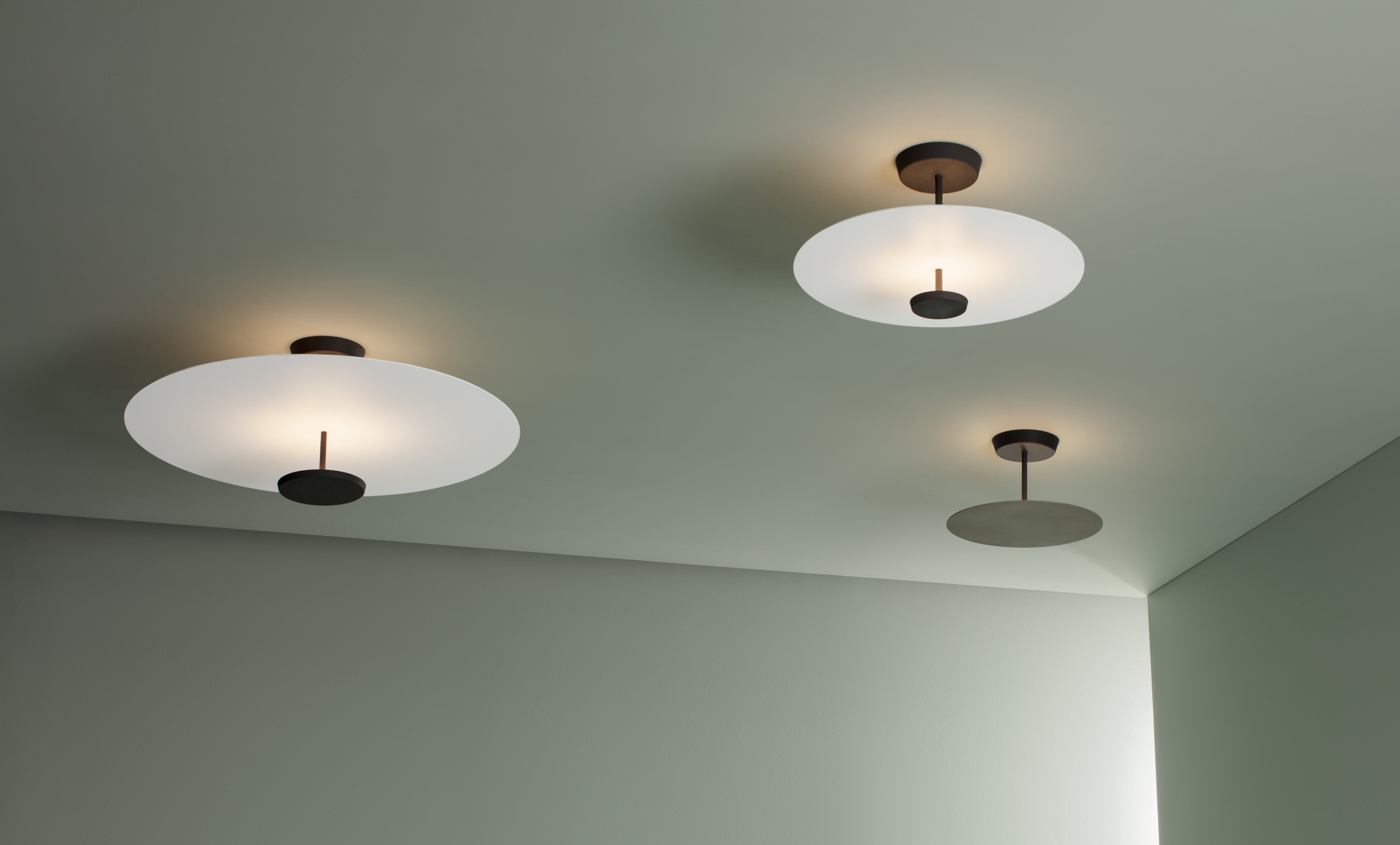 Подвесные светильники серии Flat переосмысливают роль освещения в интерьере. Их фирменные дисковые рассеиватели создают чёткие горизонтальные плоскости света, будто парящие в воздухе, не навязчивые, а гармонично встроенные в пространство.