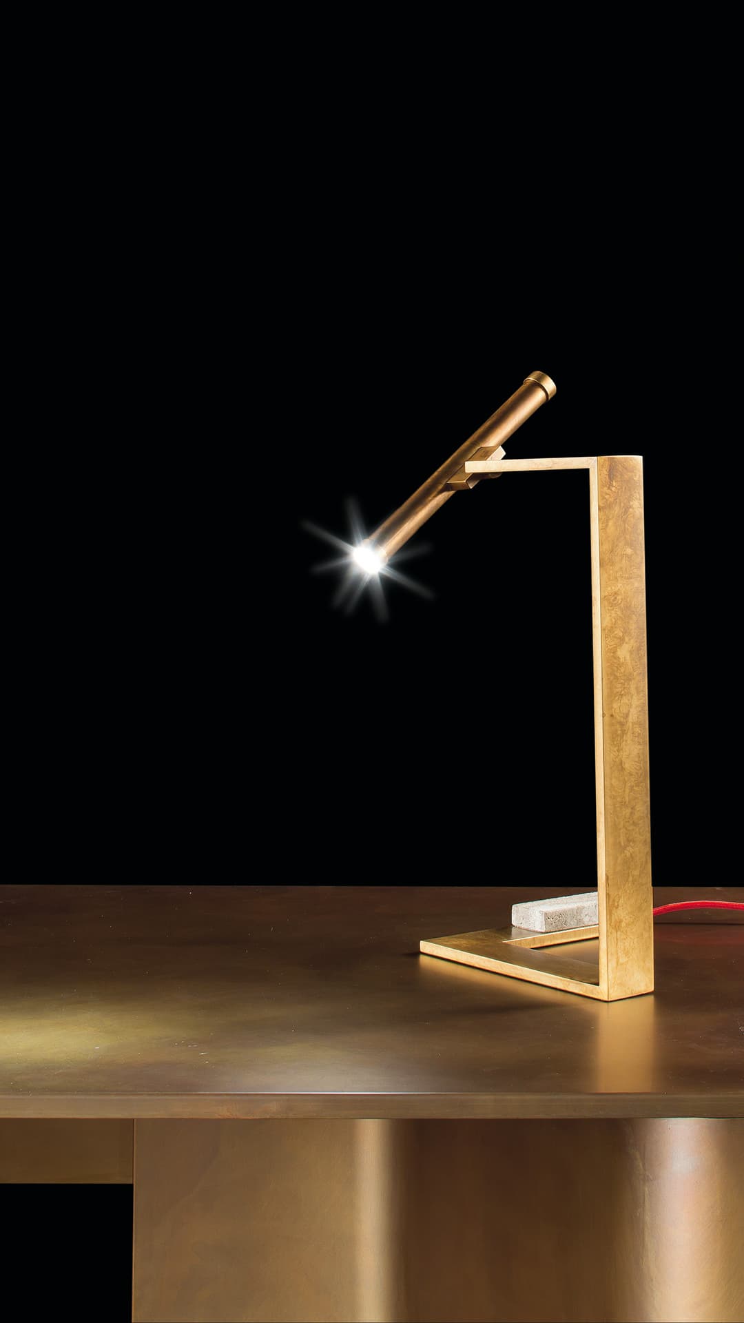 Корпус лампы выполнен из высококачественной латуни, придающей ей благородный и изысканный вид. Многонаправленное освещение обеспечивает равномерное распределение света, делая лампу универсальной для различных задач — от чтения до создания уютной атмосферы.