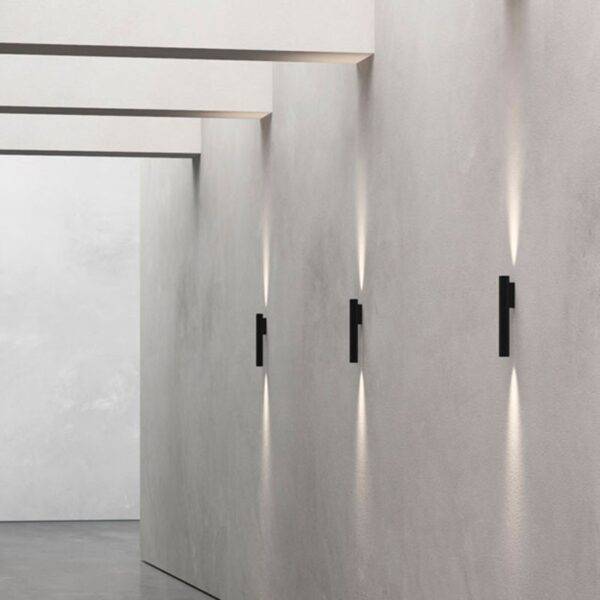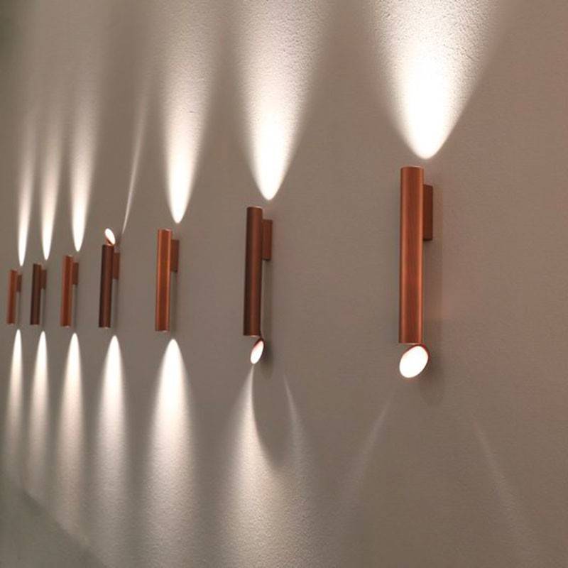 Ключевая особенность дизайна — декоративный отражатель, который можно установить по желанию на верхний или нижний излучающий элемент. Он окрашен в тон корпуса и создаёт выразительные блики, усиливая игру света и тени на стене.