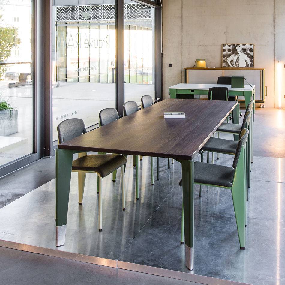 Обеденный стол Flavigny выполнен в современном стиле. Прямоугольная столешница изготавливается из массива дуба или ореха. Стол выполнен на металлическом каркасе в оливковом оттенке. Ножки, расположенные под углом 45 градусов, предоставляют максимум пространство для ног сидящих, дополнены алюминиевыми накладками. Более подробную информацию и варианты расцветок можно уточнить у менеджера.