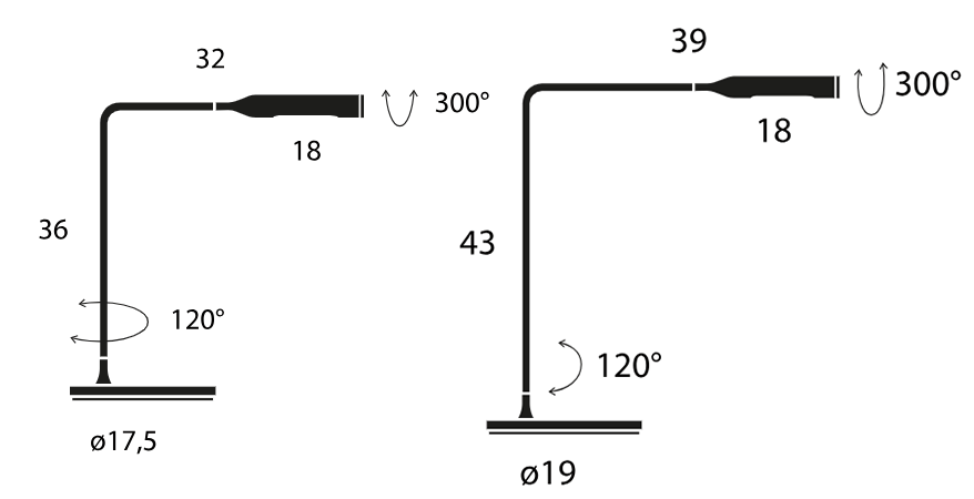 Кронштейн светильника на 7 см короче, чем у Flo Desk. Его длина составляет 43 см, что придаёт ему более компактные пропорции. Мощность светодиодов также уменьшена с 6 Вт до 3 Вт. Это обеспечивает мягкое, ненавязчивое освещение, которое не перегружает пространство.