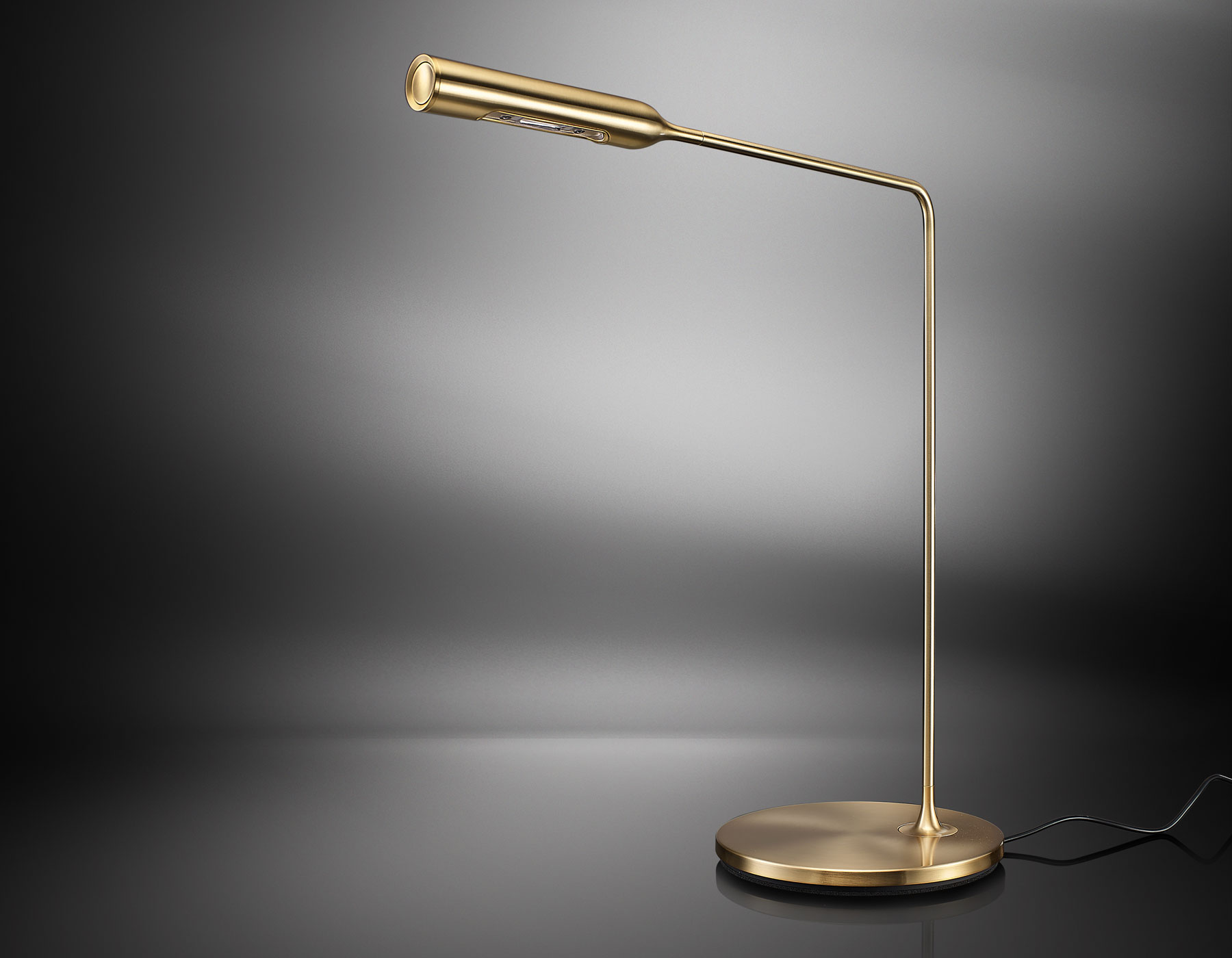 Первый светильник в линейке Lumina, Flo Desk, олицетворяет философию бренда: «много света, минимум лампы». Его дизайн — это гармония простоты и функциональности. Тонкая цилиндрическая головка, выполненная с точностью до мельчайших деталей, сочетается с лёгким, но исключительно прочным алюминиевым корпусом. Баланс форм достигается за счёт круглого основания, которое, как и остальные элементы, изготовленные из алюминия, обеспечивают устойчивость и элегантность.