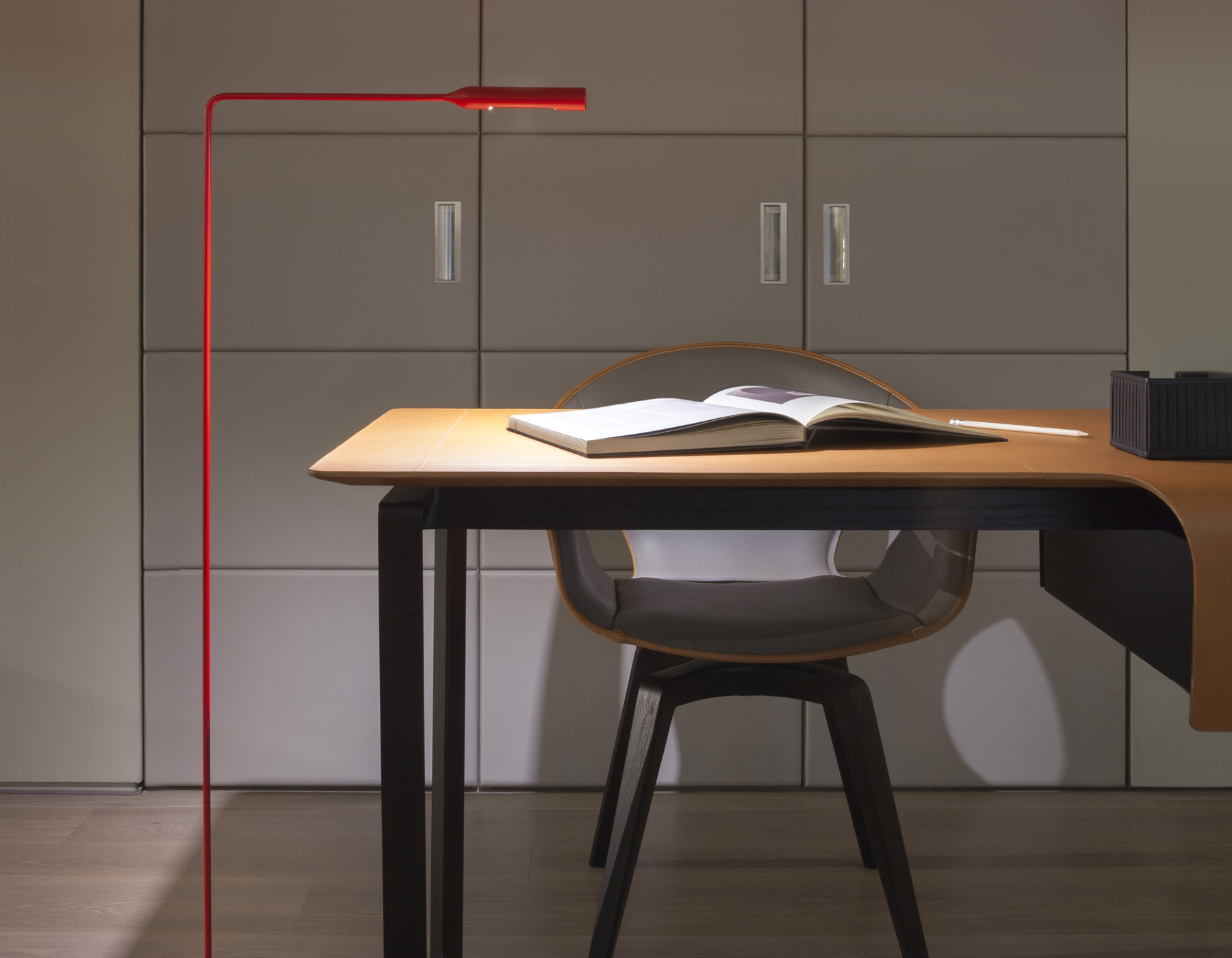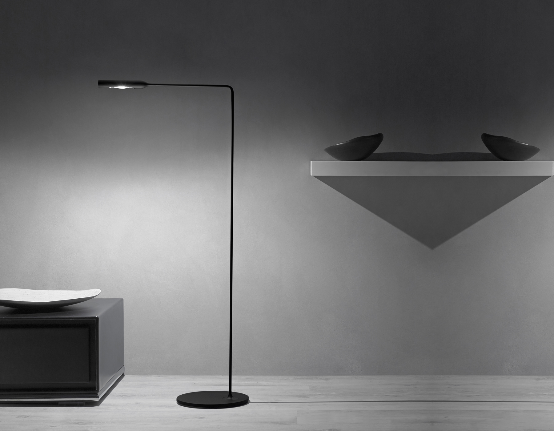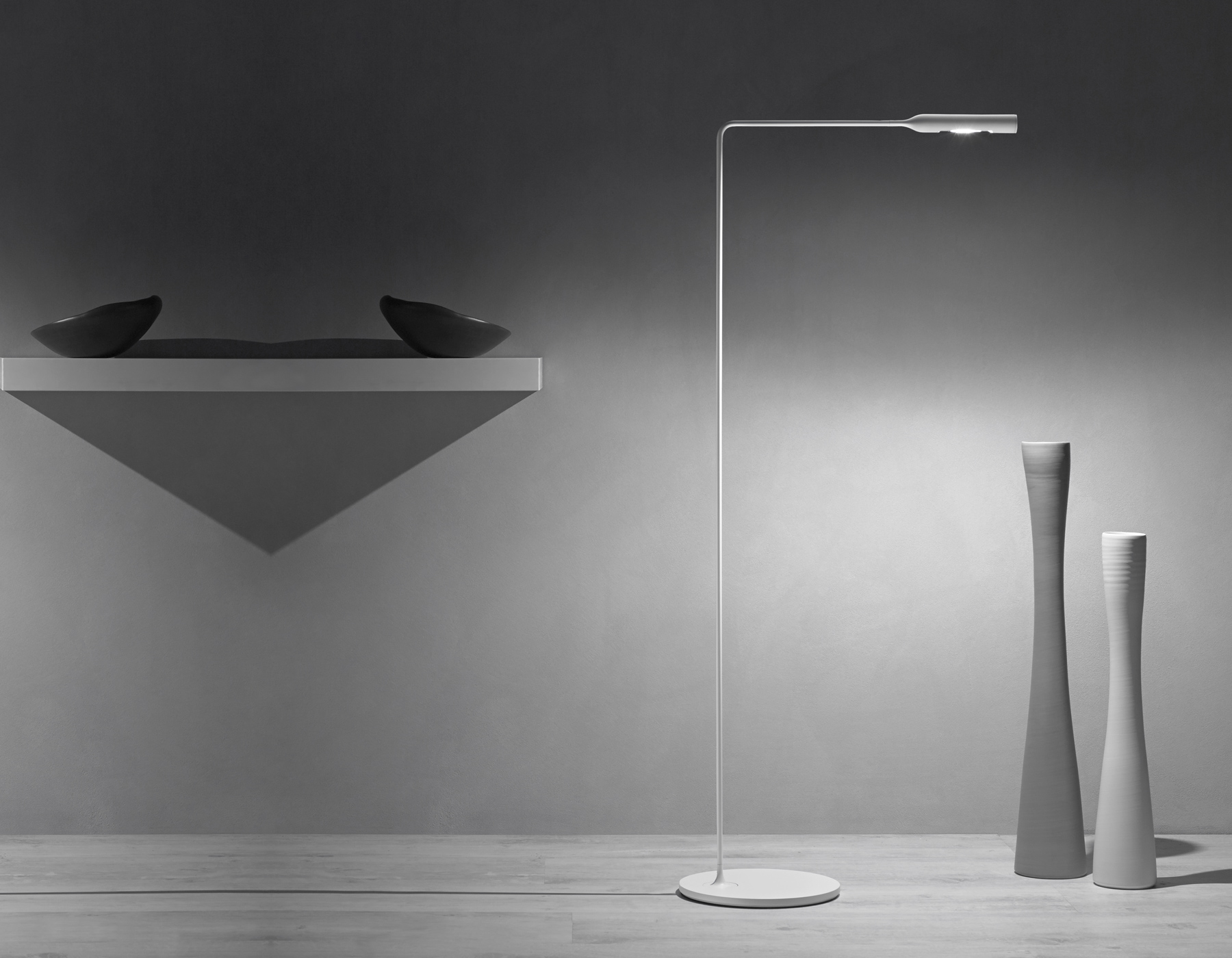 Параллельно с настольными моделями компания Foster + Partners разработала два напольных светильника Flo lamp, которые гармонично сочетают в себе современные технологии и эстетичный дизайн. Эти светильники повторяют характерные особенности бренда.