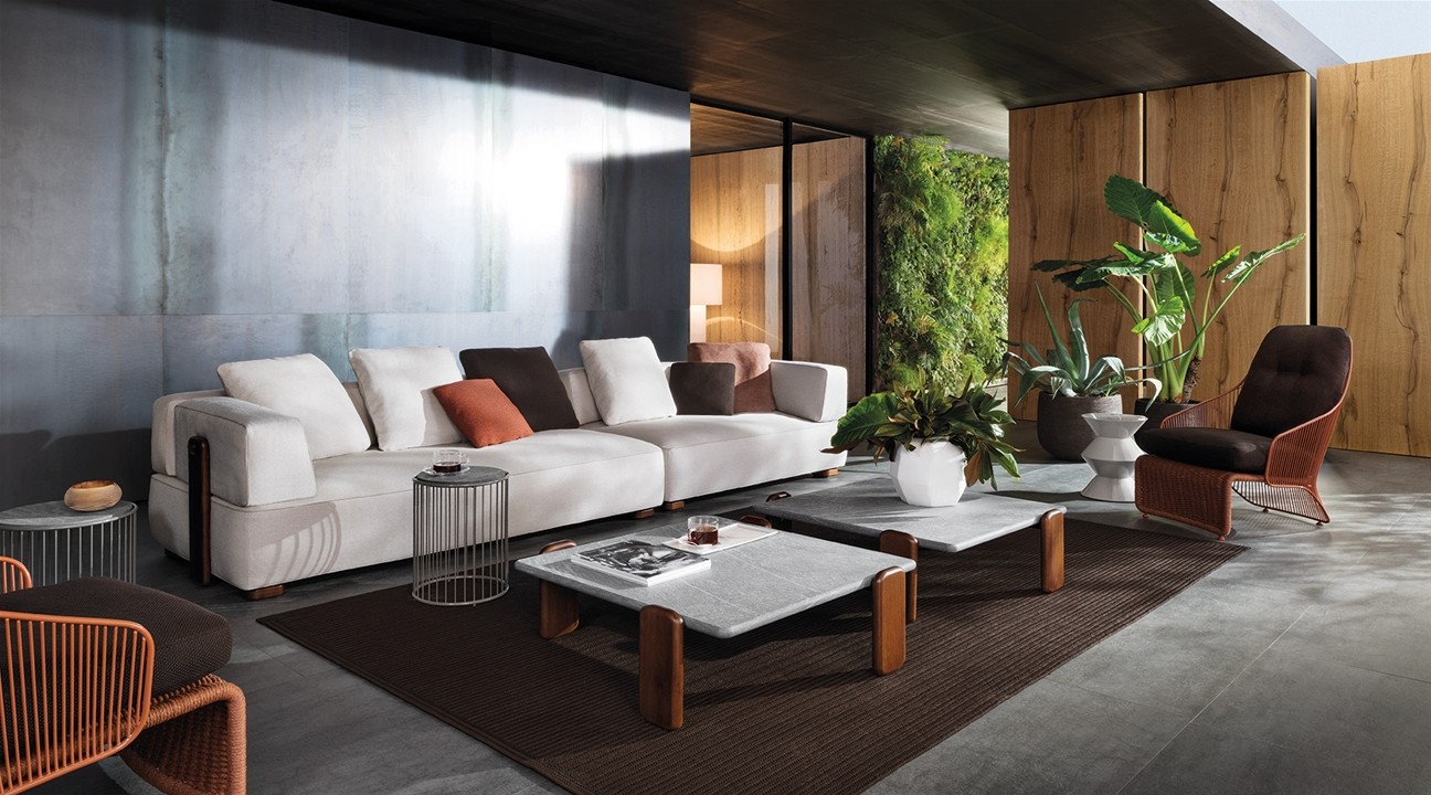 Коллекция Florida от бренда Minotti включает в себя мебель для использования в уличных условиях. Каркас модульного дивана Florida Outdoor изготавливается из прочного металла. Сиденье и спинка соединены панелями, которые выполнены из дерева. В качестве наполнителя используется пенополиуретан. Обивка дивана доступна в различной цветовой гамме и может быть выполнена из ткани. Диван можно использовать на улице, благодаря использованию специальных влагостойких материалов.