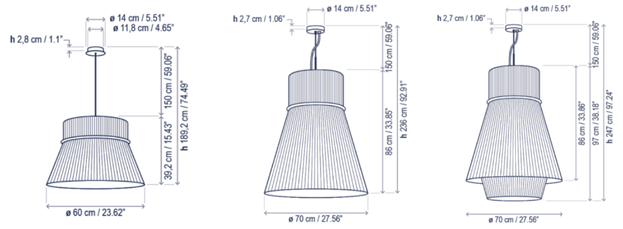 Светильники серии Folie S/60, S/70, S/70.2 представляют собой инновационное решение, которое возникло благодаря стремлению бренда Bover расширить ассортимент крупными формами. Эти изделия были созданы путем переработки классических моделей, адаптируя их под крупные конструкции с использованием толстых железных труб и ручной сварки серебряным припоем.