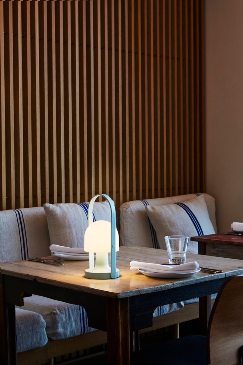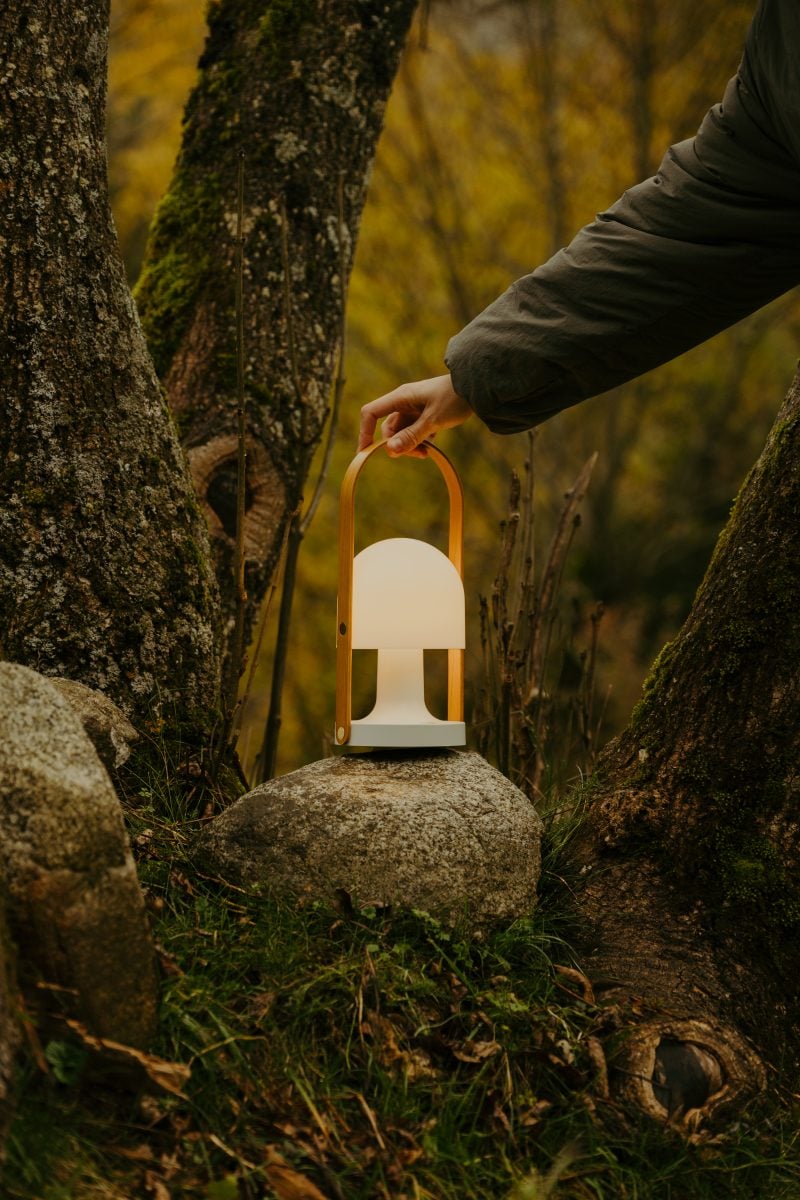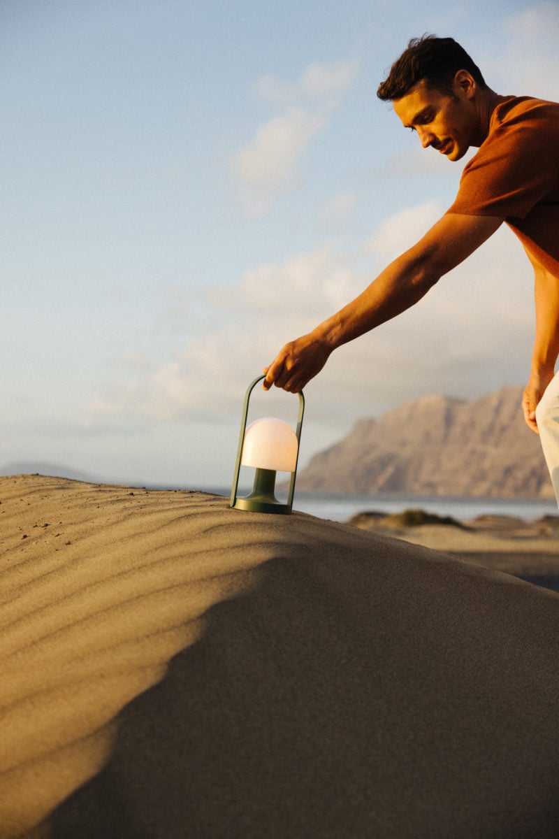 Совершенствуя свою концепцию, FollowMe представляет расширенную цветовую палитру. Каждый оттенок обладает своим настроением. Нежные розовый и голубой дарят ощущение лёгкости и безмятежности. Они идеально вписываются в интерьеры с пастельной гаммой или детские пространства. В то же время насыщенный зелёный и глубокий терракотовый привносят в обстановку энергию и стильный акцент. Эта палитра демонстрирует универсальность светильника. Особую выразительность дизайну придаёт деревянная ручка, окрашенная в тон выбранному цвету. Эта деталь превращает лампу в маленькое произведение искусства.