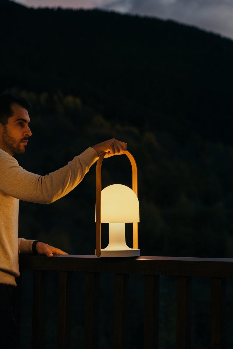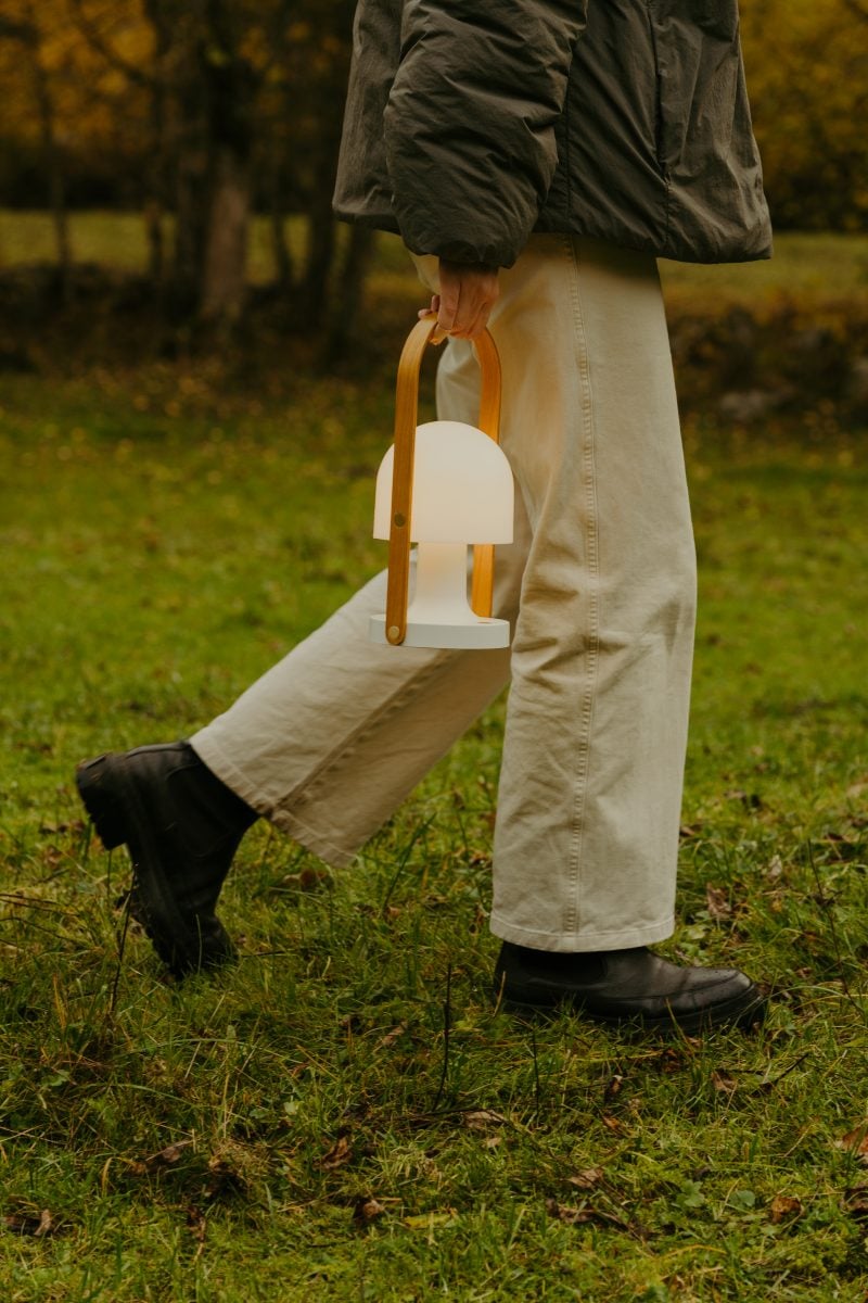 Новая версия, FollowMe Plus, развивает успех оригинальной модели. Она сохраняет узнаваемые черты, но представлена в более крупном формате. Увеличенные габариты расширяют возможности использования. Теперь это не только компактный переносной светильник, но и полноценная настольная или даже напольная лампа. Она способна преобразить атмосферу целого помещения. Тёплый свет льётся из белого поликарбонатного абажура и создаёт уют. Дубовая ручка добавляет тактильное удовольствие, приглашая прикоснуться и перемещать лампу.