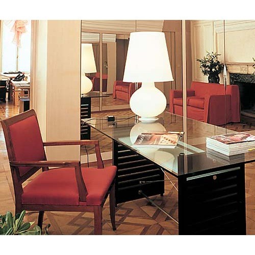 Светильник Fontana имеет классическую форму, поэтому отлично будет смотреться в гостиных и в кабинетах. Его структура сделана из металла и окрашена в белый цвет. Именно он дает светильнику возможности "прийти ко двору" для многих дизайнерских решений. Представлен в трех размерах.