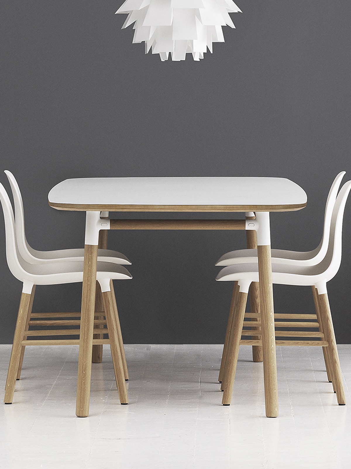Стол подходит не только к Form Chair, но и к другим стульям в скандинавском стиле. Его можно использовать как: