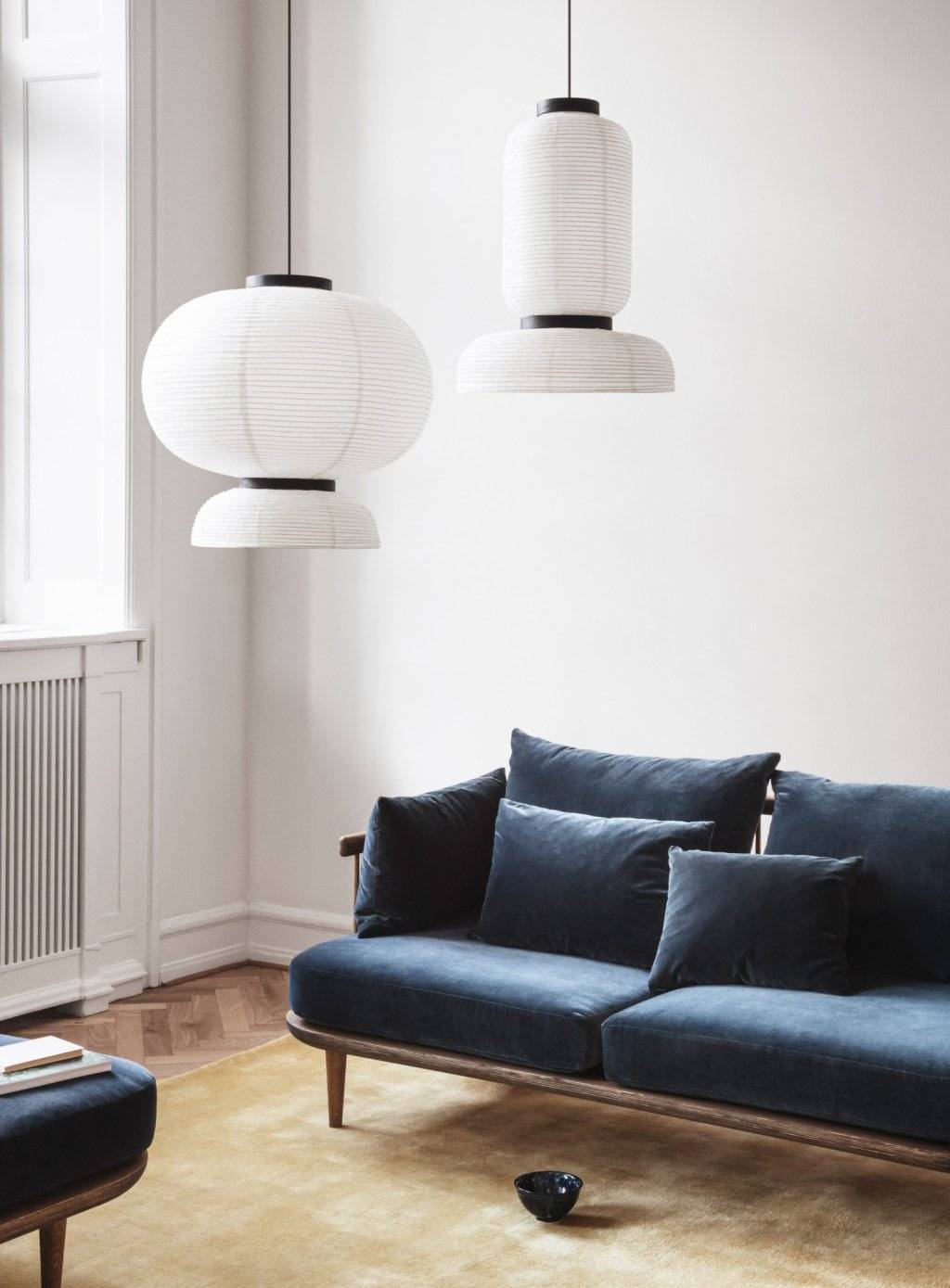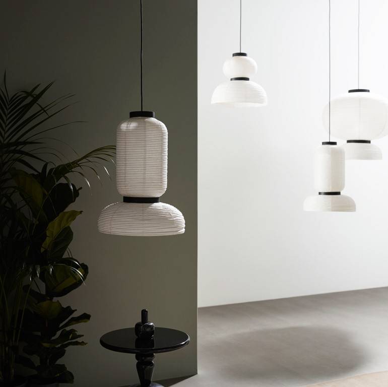 Светильники Formakami JH3 - своеобразная версия японских фонарей из рисовой бумаги от дизайнера Хайме Айона. Используя привычные материалы и традиционную технику он создал светильники для современного дома. Основание и деталь, фиксирующая два объема, выполнены из черненого дуба. За счет белого цвета, двух ламп внутри и открытого абажура светильники дают много света.