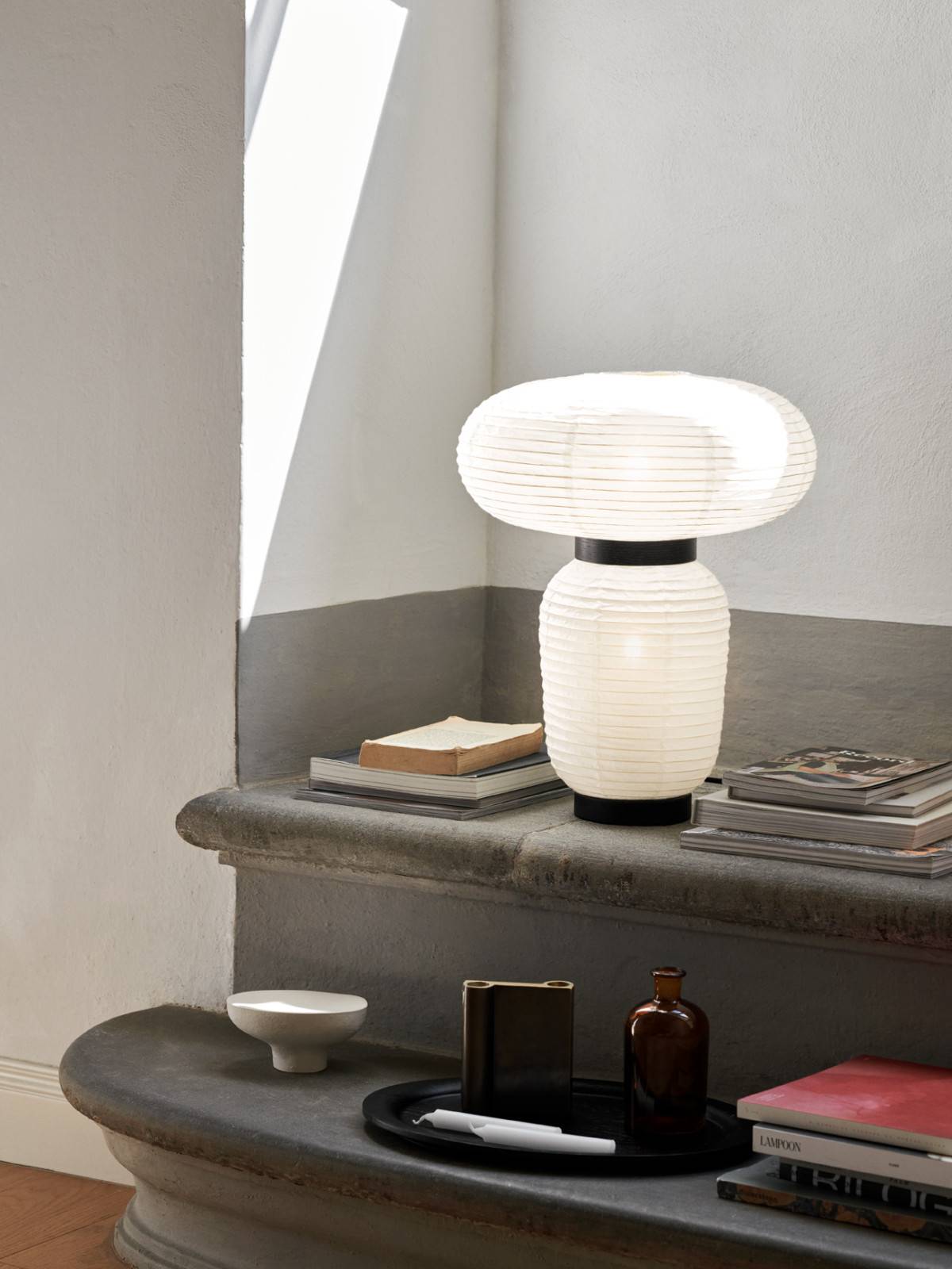 Абажур лампы Formakami JH18 выполнен вручную из тончайшей, текстурированной бумаги. Он обладает воздушной, почти живой формой: пухлый, округлый, словно облако, замершее в покое. Эта бумага не просто пропускает свет — она превращает его в ощущение: мягкий, рассеянный, без единого блика, как утренний свет, пробивающийся через бумажные стены традиционного японского дома.