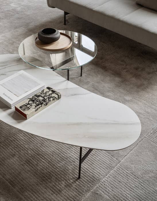Рама столиков Formiche изготовленная из окрашенной стали состоит из округлых опор, соединённых тонкими поперечинами. Такая конструкция обеспечивает прочность и надёжность мебели. Она также придаёт ей лёгкость и изящество. Это делает её визуально невесомой. Столешницы различных форм — круглых, овальных или в виде «фасоли» — можно выбрать. Это позволяет адаптировать столики под любые потребности и особенности пространства. Столики универсальны и подходят для использования в гостиных, спальнях, на террасах или в офисах. Они создают уютную и стильную атмосферу в любом помещении.