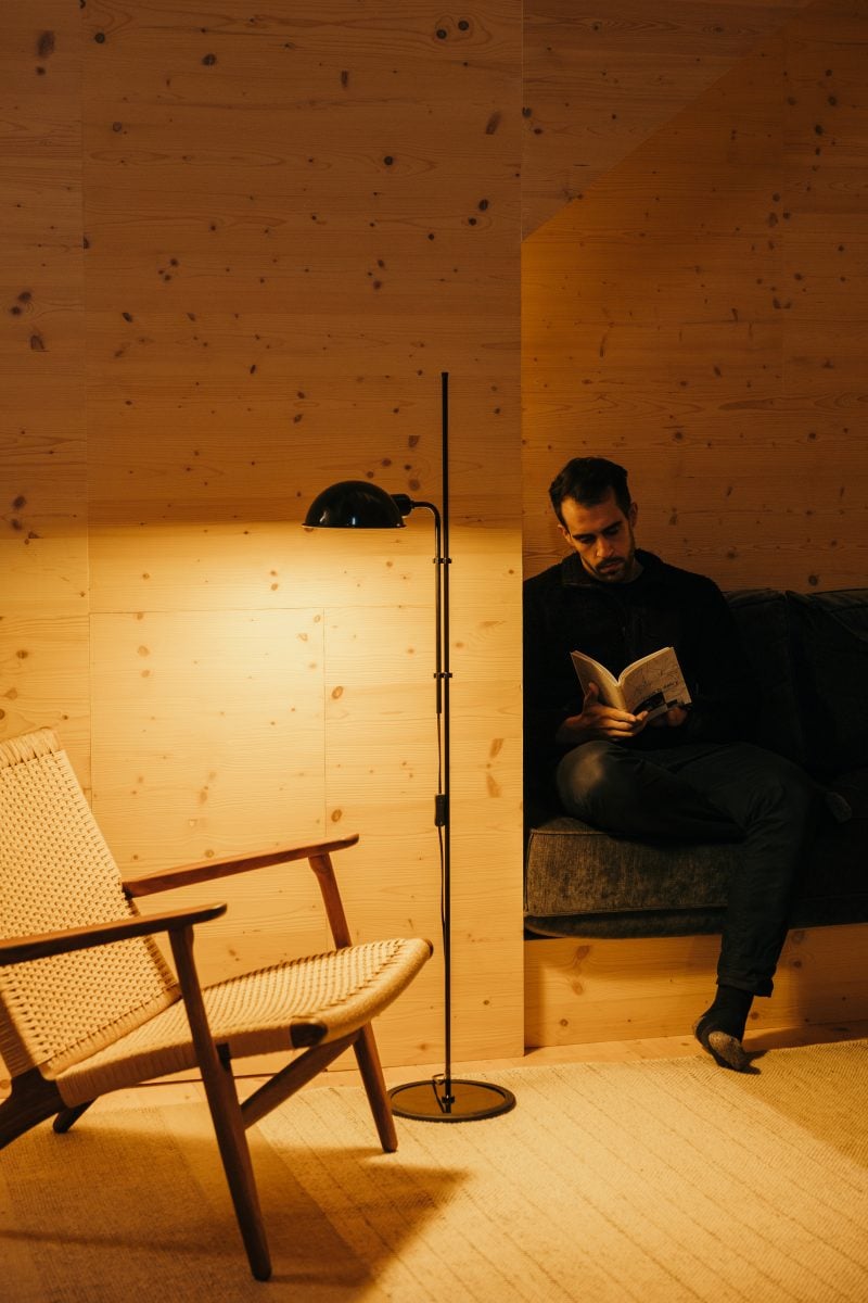 Изначально напольная лампа Funiculi была доступна в нейтральных тонах. Среди них были мохово-серый, чёрный и кремовый. Однако теперь к ним добавились новые насыщенные цвета. Это зелёный, терракотовый и горчичный. Эти цветовые решения подчёркивают оригинальные формы фуникулёра. Они также придают пространству дополнительную глубину и хроматичность.