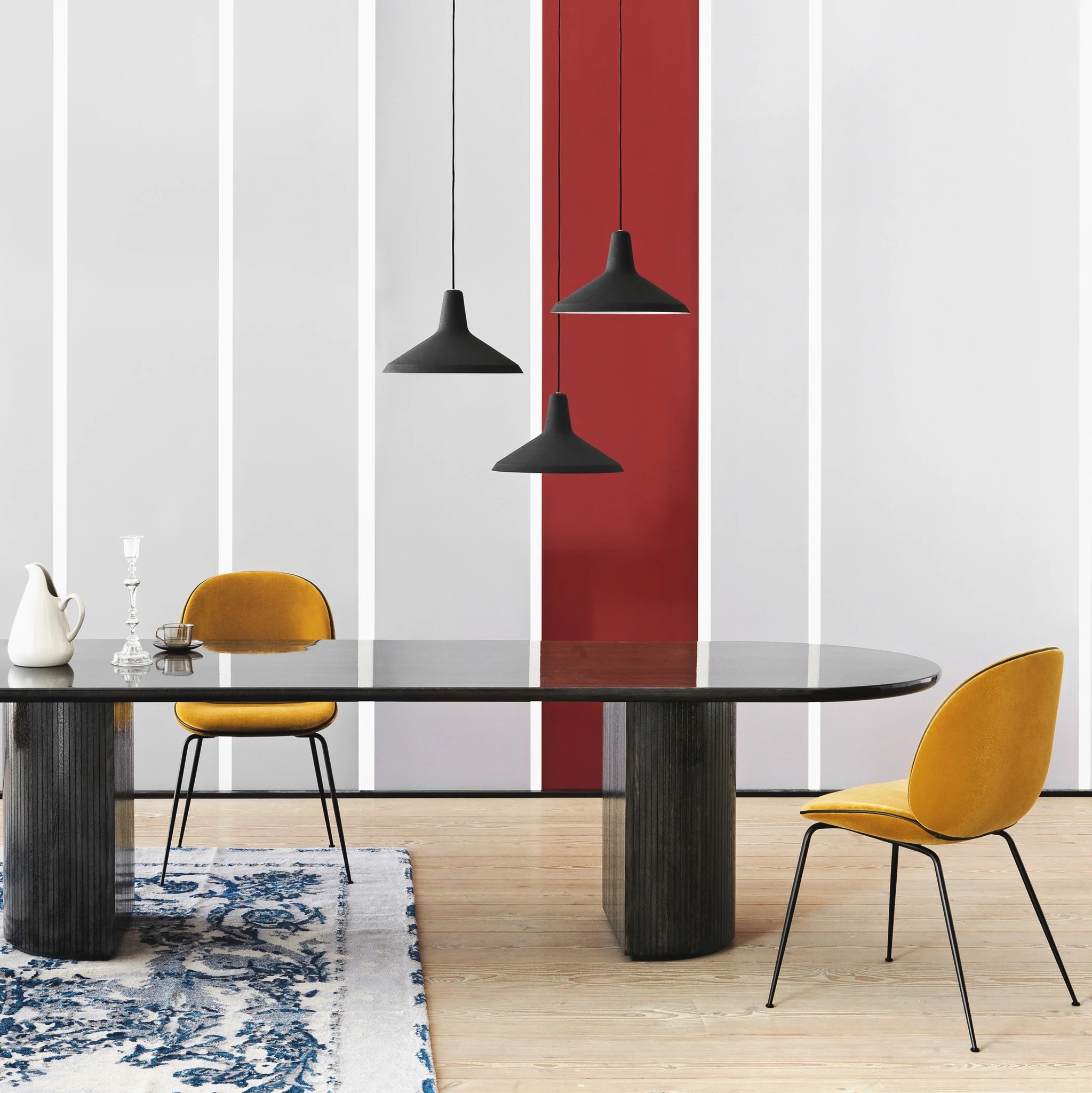 Подвесной светильник G-10 Pendant Lamp от GUBI, разработанный Гретой М. Гроссман в 1950-х годах, сочетает в себе индустриальную эстетику и элегантный силуэт, напоминающий женскую шляпку 50-х годов.