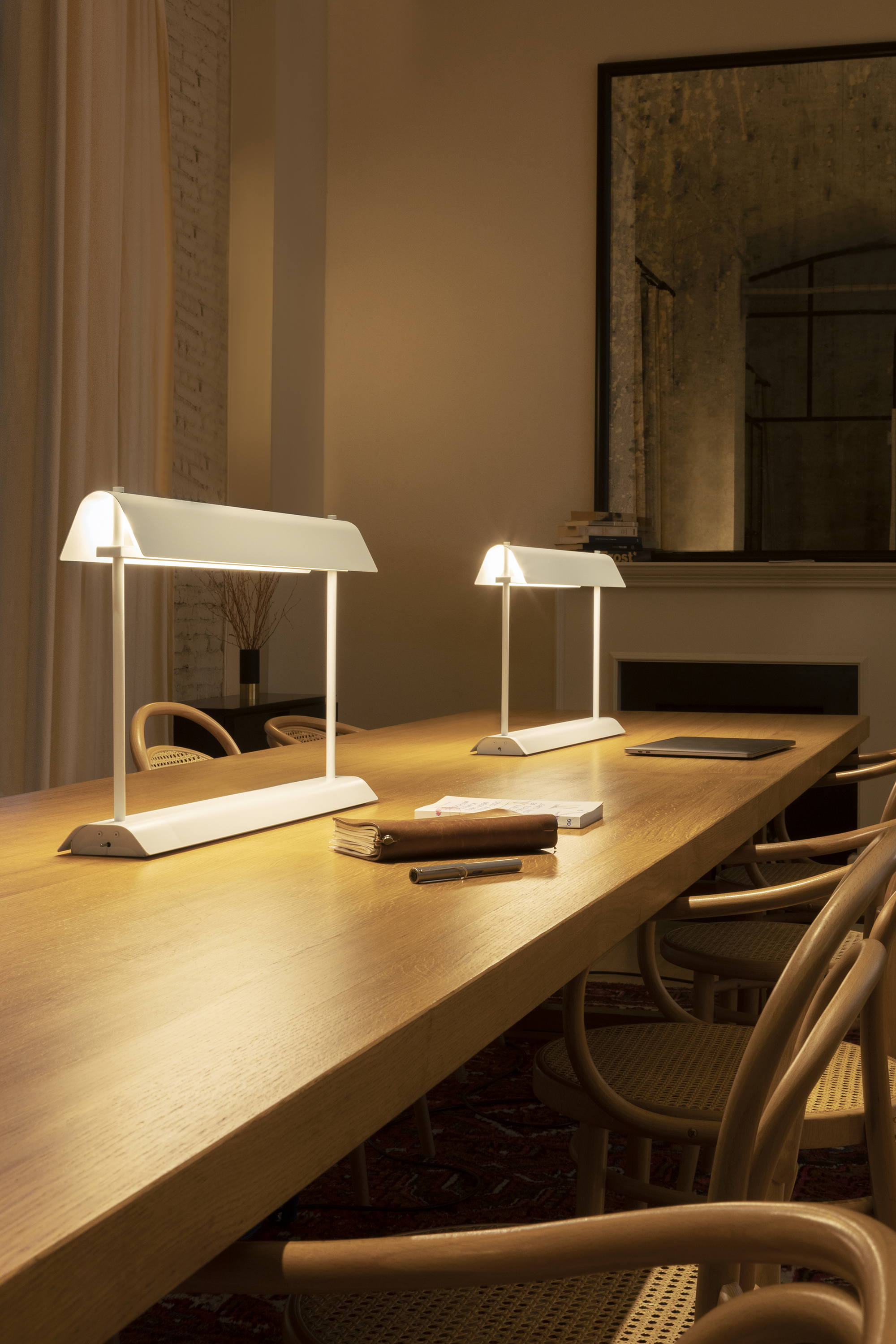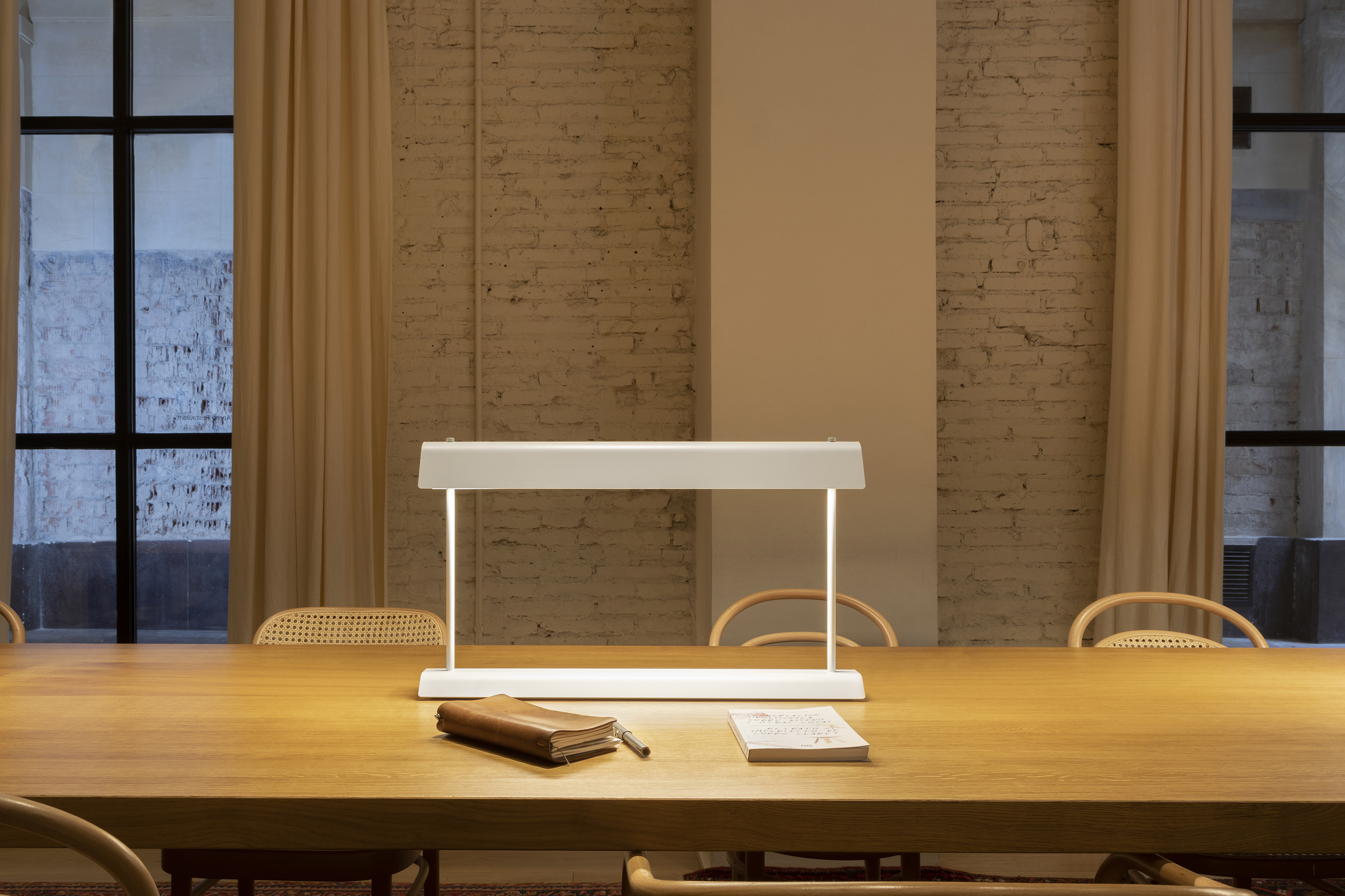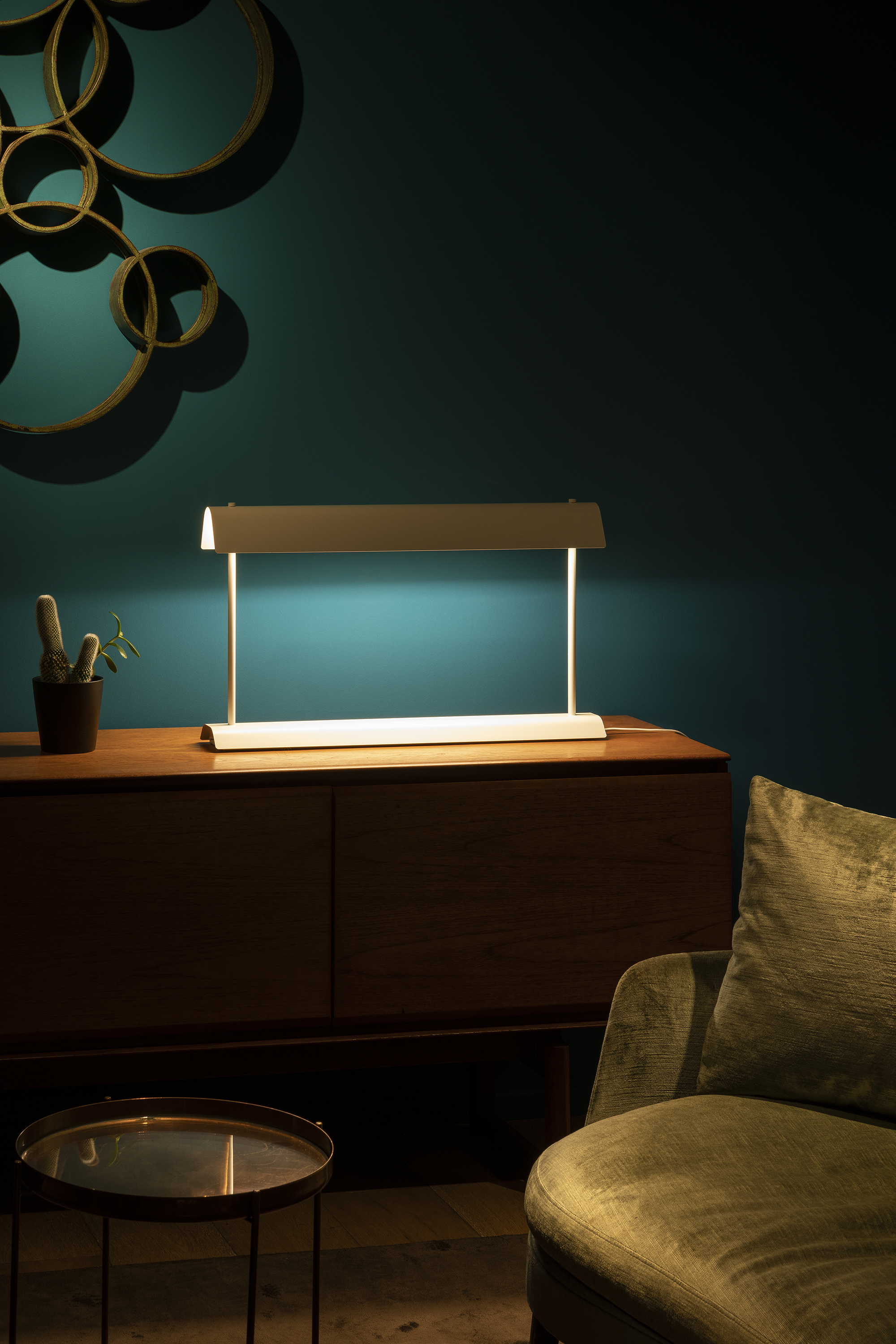 Gada Table — это металлическая настольная лампа, которая станет отличным решением для рабочего, общего или акцентного освещения. Лампа создаёт комфортное освещение благодаря продуманной конструкции. Встроенный светодиод расположен в верхней части. Он направляет свет вверх, на внутреннюю поверхность абажура. Абажур отражает свет вниз. Это обеспечивает непрямое и мягкое освещение столов или рабочих поверхностей.