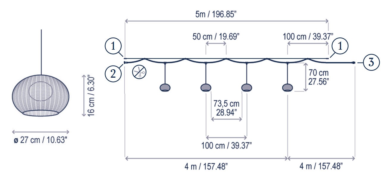 Подвесная гирлянда Garota Catenary S/27/4L Outdoor создана для того, чтобы превратить любое открытое пространство в уютное место для отдыха, эта подвесная гирлянда излучает мягкий, теплый свет, наполняющий вечернюю атмосферу особой магией. Ее дизайн, вдохновленный природными формами, сочетает в себе легкость и изысканность, благодаря чему она органично вписывается в сады, террасы, беседки и другие уголки, где хочется создать романтичное или праздничное настроение.