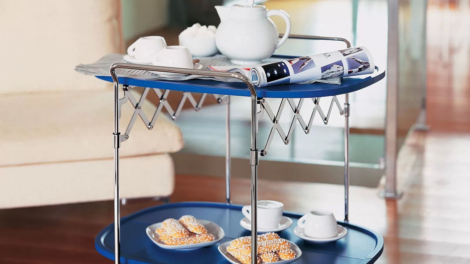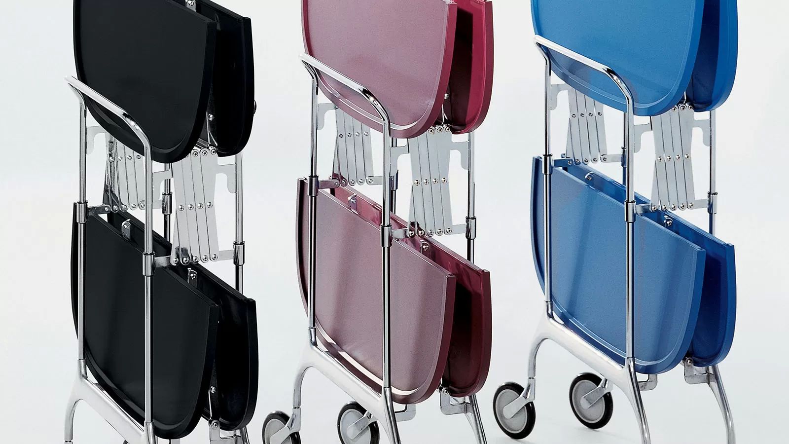 Удобная складная тележка Gastone необычайно практична. Её с легкостью в одно движение можно сложить и она не будет занимать много места. Тележка станет незаменимым аксессуаром для приема гостей и организации вечеринок. Столешница сделана из окрашенного пластика, а ножки из хромированной стали.