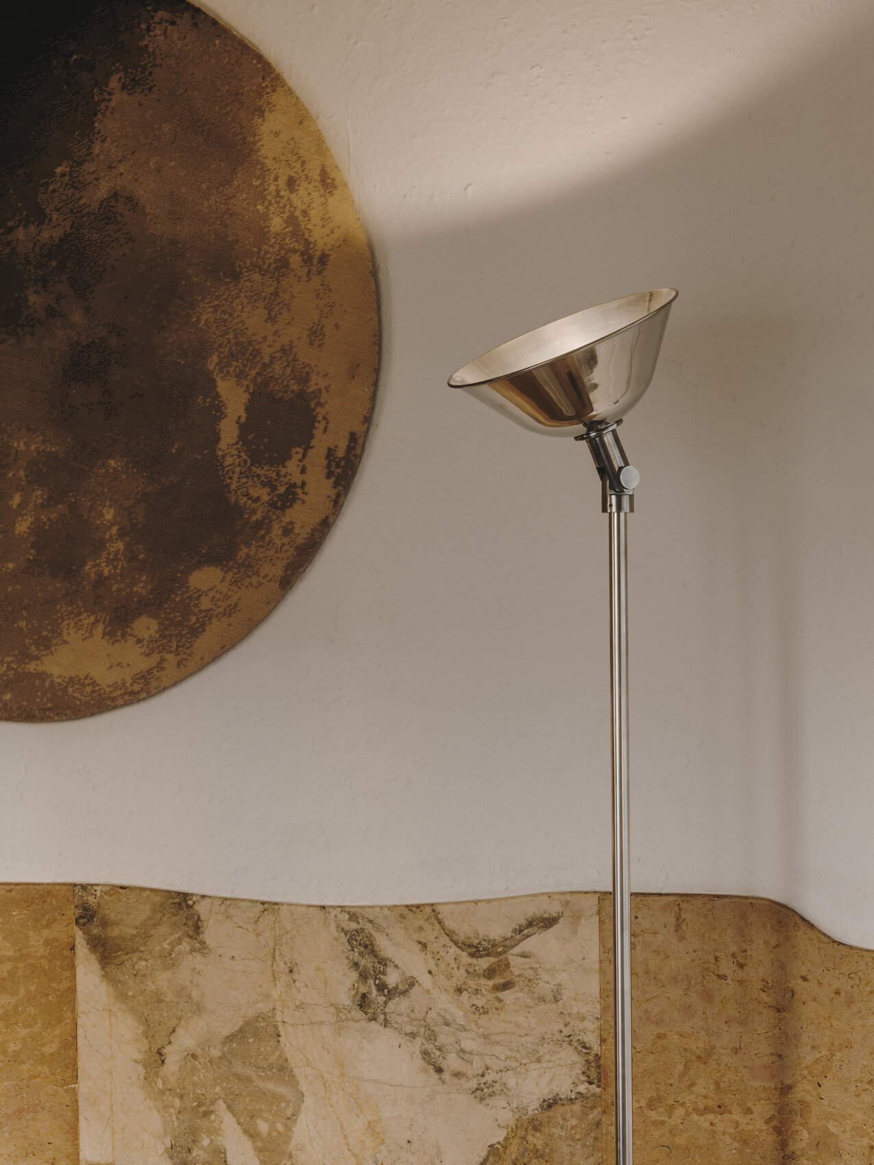 Напольный светильник Gatcpac сочетает в себе простой, но продуманный дизайн и удобную функциональность. Его основа — прочное металлическое основание, от которого поднимается высокий стержень с широким профилем. В верхней части расположен поворотный шарнир с ручным управлением. Благодаря ему можно легко менять положение плафона: наклонять вверх для мягкого рассеянного света или направлять в нужную сторону для яркого прямого освещения.