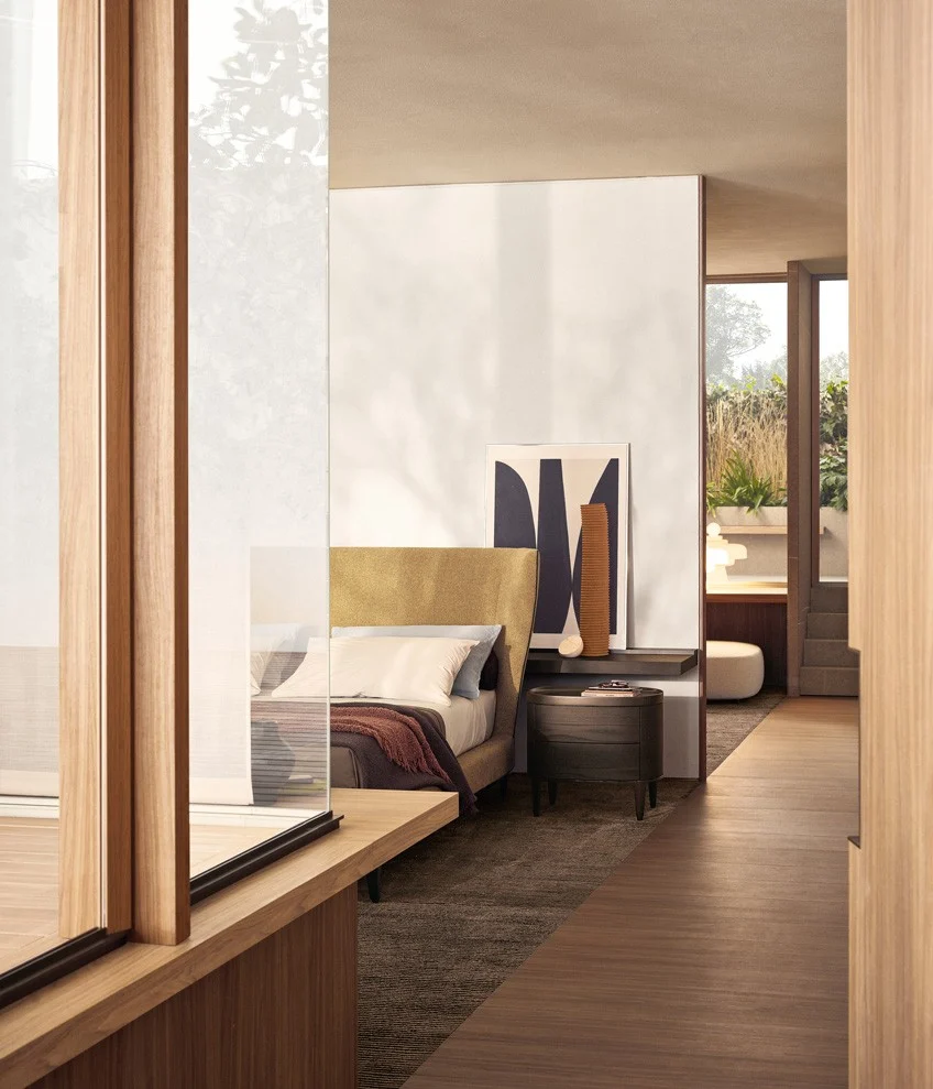 Кровать из коллекции Gentleman Night Collection — это воплощение утончённости и элегантности, идеально вписывающееся в интерьер гостиной. Её плавные линии и гармоничное сочетание с остальной мебелью создают атмосферу уюта и роскоши.