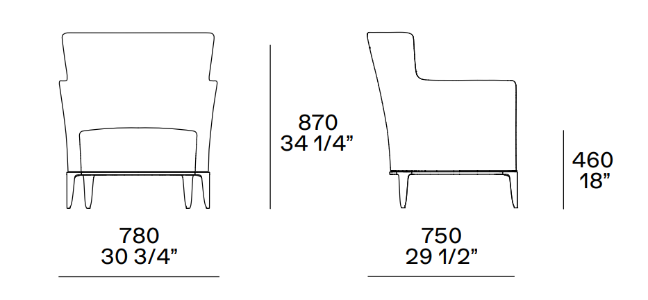 Дизайн кресла сочетает плавные, обтекаемые формы с выразительными элементами. Изящные заостренные ножки перекликаются с эстетикой другой модели коллекции – Gentleman Single, сохраняя единство стиля.