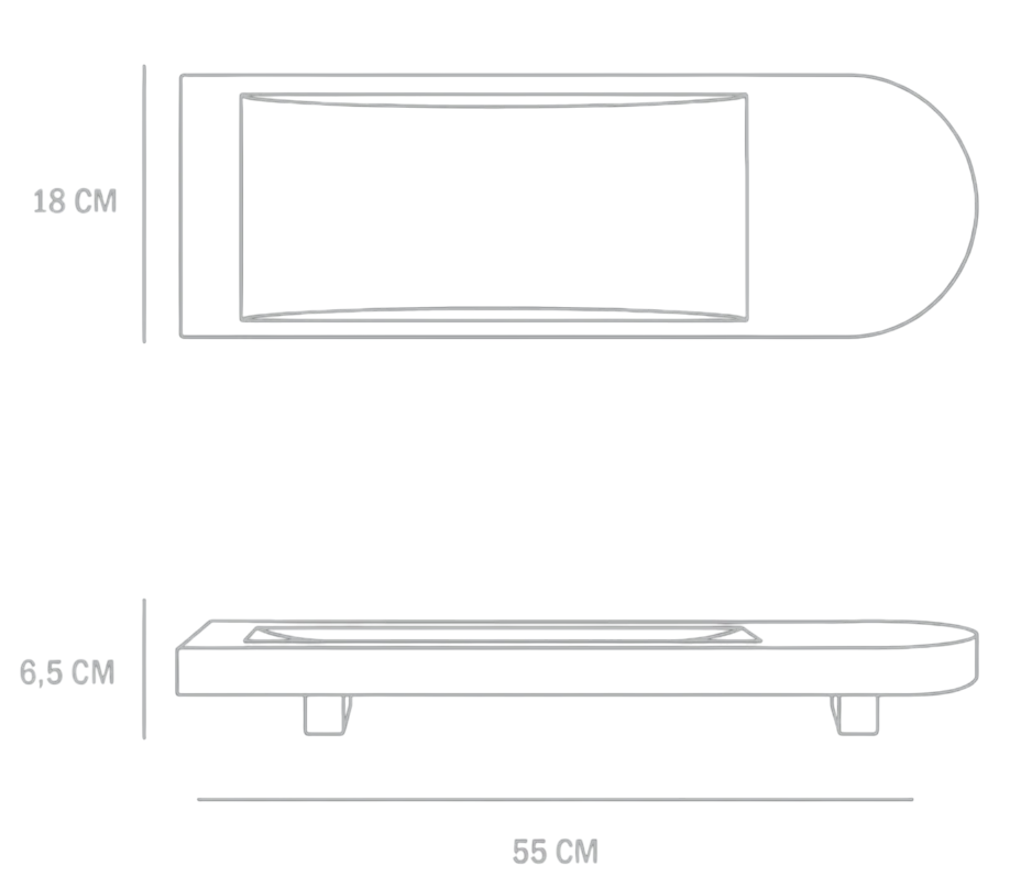 Поднос Geta — это предмет, вдохновлённый японскими декоративными подносами. Его дизайн отражает традиционные японские формы: платформа подноса приподнята над поверхностью стола. Это решение позволяет эффектно выделить конкретный предмет или элемент декора, придавая ему особую значимость. Название «Geta» отсылает к классическим японским туфлям гэта с двумя ремешками, что придаёт подносу определённый культурный контекст и характер.