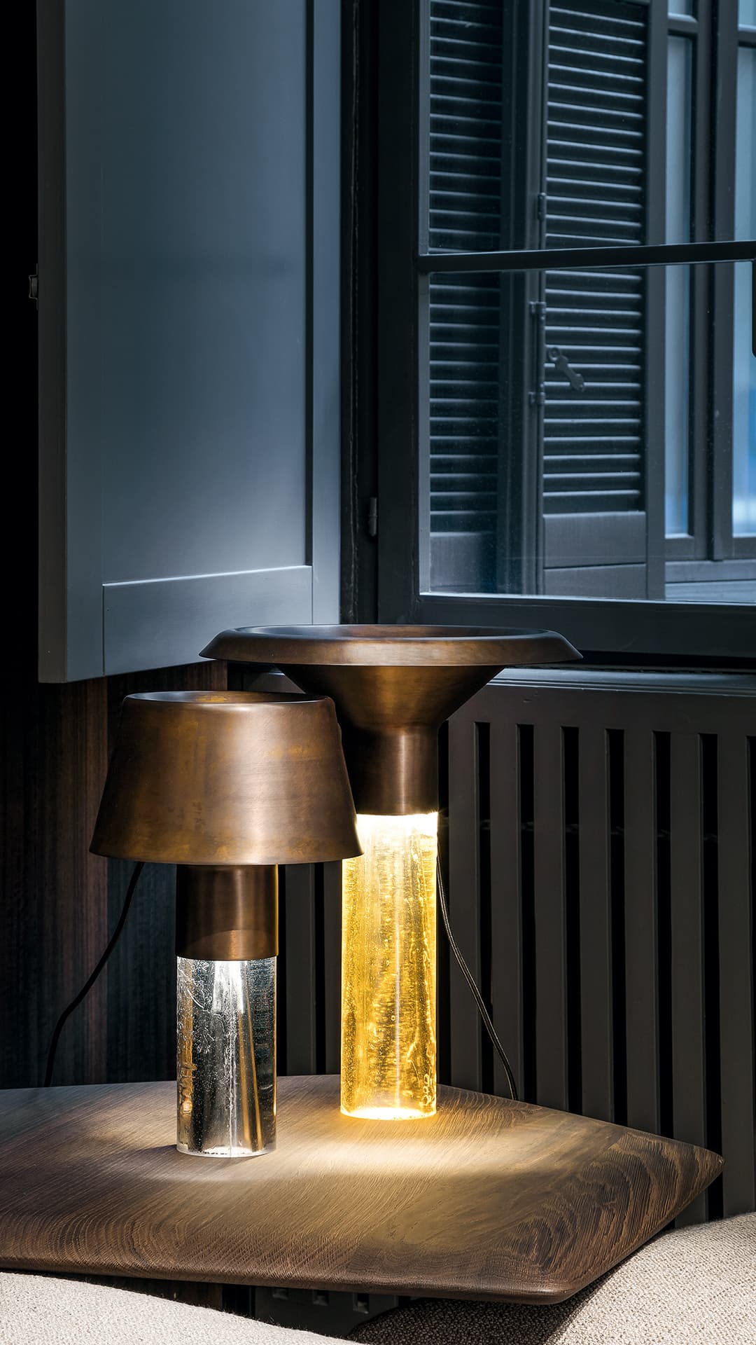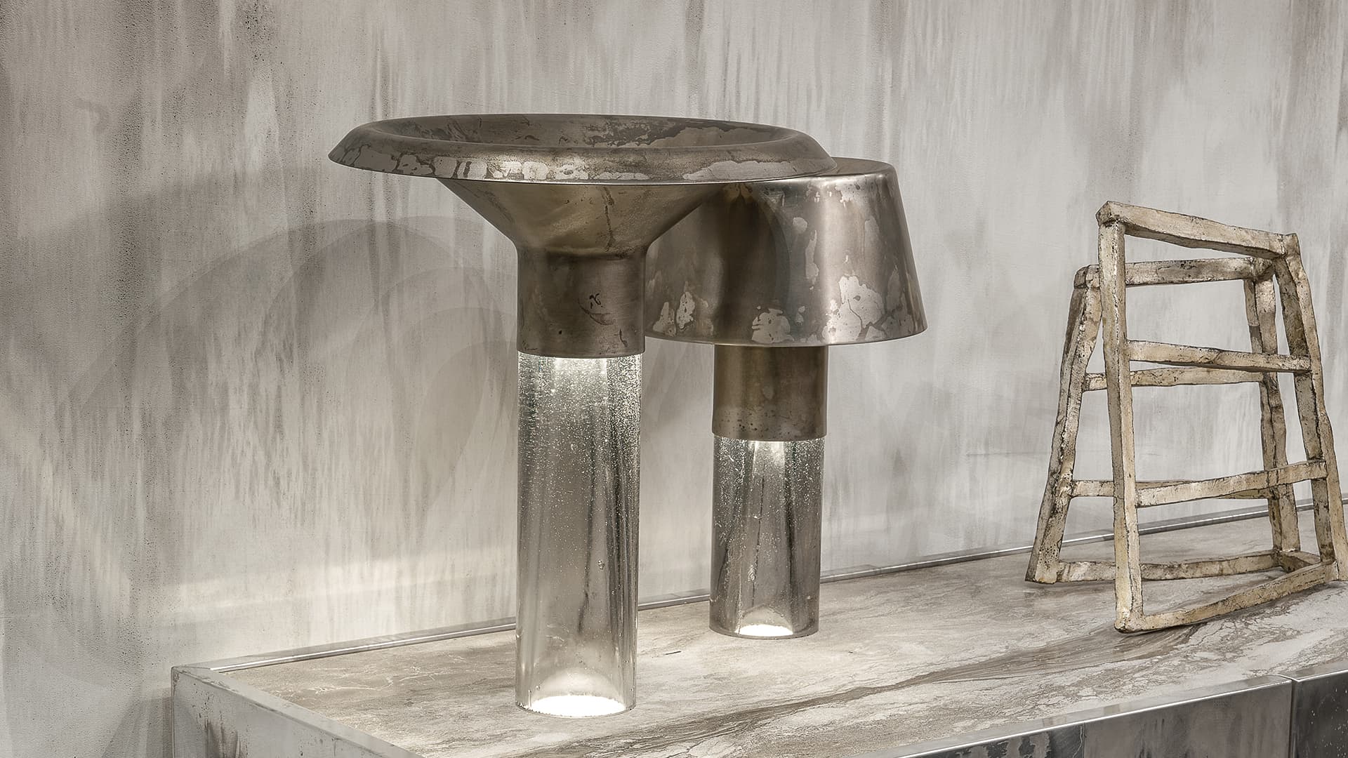 Лампа настольная Ghost Lamp Table — это изысканный и выразительный предмет интерьера, который станет ярким акцентом в любом пространстве. Центральный цилиндрический корпус выполнен из смолы, а в его оформлении использованы вручную отполированные металлы. Эта комбинация материалов создаёт уникальные цветовые преобразования, которые завораживают игрой света.