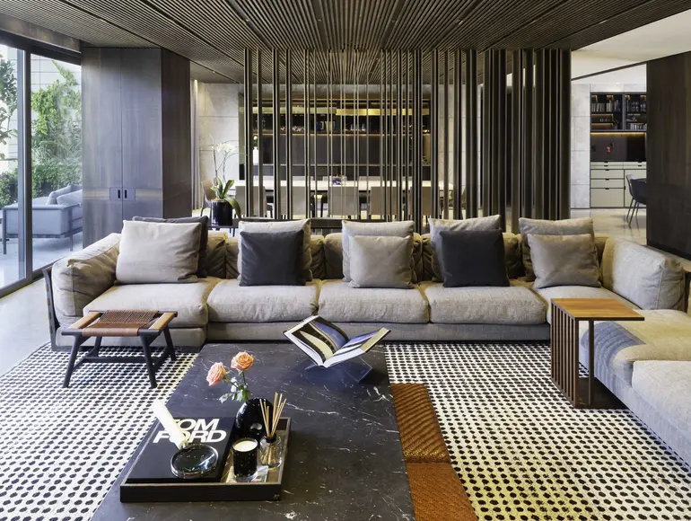 Функциональность Giano сочетается с декоративными качествами. Он может служить удобной подставкой для ног, оригинальным сиденьем или стильным журнальным столиком. Его универсальность позволяет использовать пуф в гостиной, спальне или кабинете, добавляя пространству ноту роскоши и уюта.
