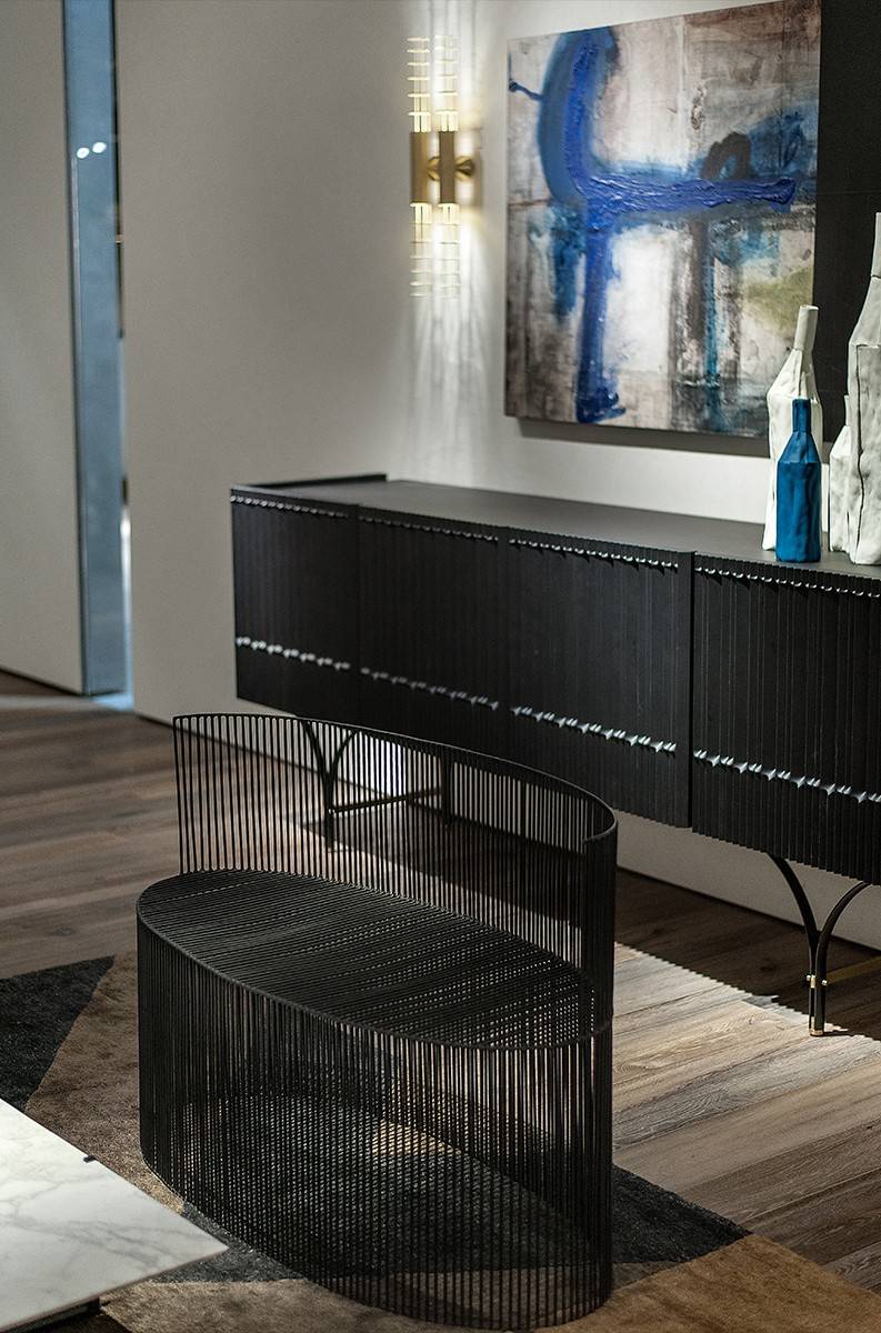 Диван Ginestra Vestita изготавливается из металлических прутьев черного цвета, расположенных близко друг к другу. Такой диван станет прекрасным дополнением для современного интерьера. К дивану дополнительно можно приобрести стул Ginestra из этой же коллекции и декоративную подушку из натуральной кожи, размером 108х49 см. Детали о данной модели уточняйте у менеджеров или в PDF инструкции.