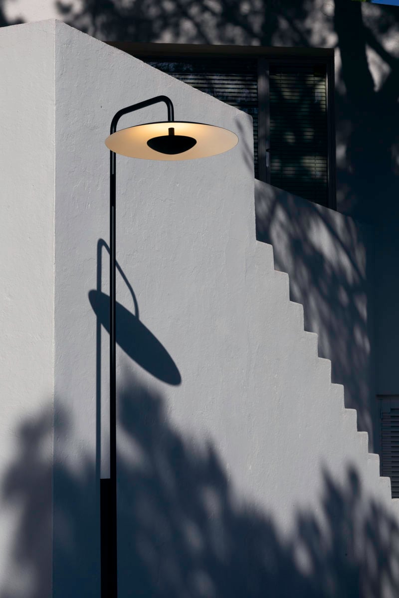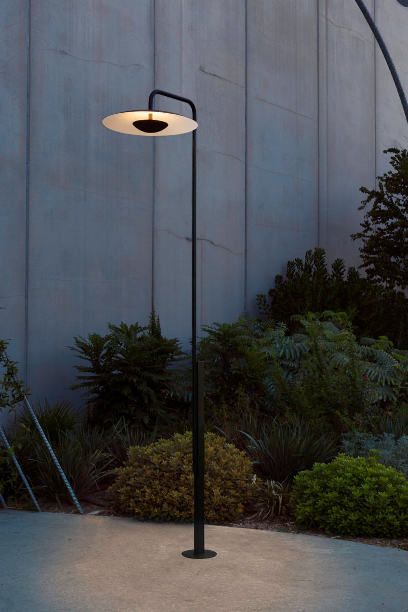 Фонарный столб Ginger Lamppost высотой почти три метра представляет собой функциональный и стильный уличный светильник, который станет украшением сада или придомовой территории. Изготовленный из лакированной стали, он окрашен в сдержанный чёрный цвет, что придаёт ему современный и элегантный вид. Матовый алюминиевый рассеиватель и диффузор с белой внутренней частью добавляют изделию утончённости и визуально смягчают свет, создавая уютную атмосферу.