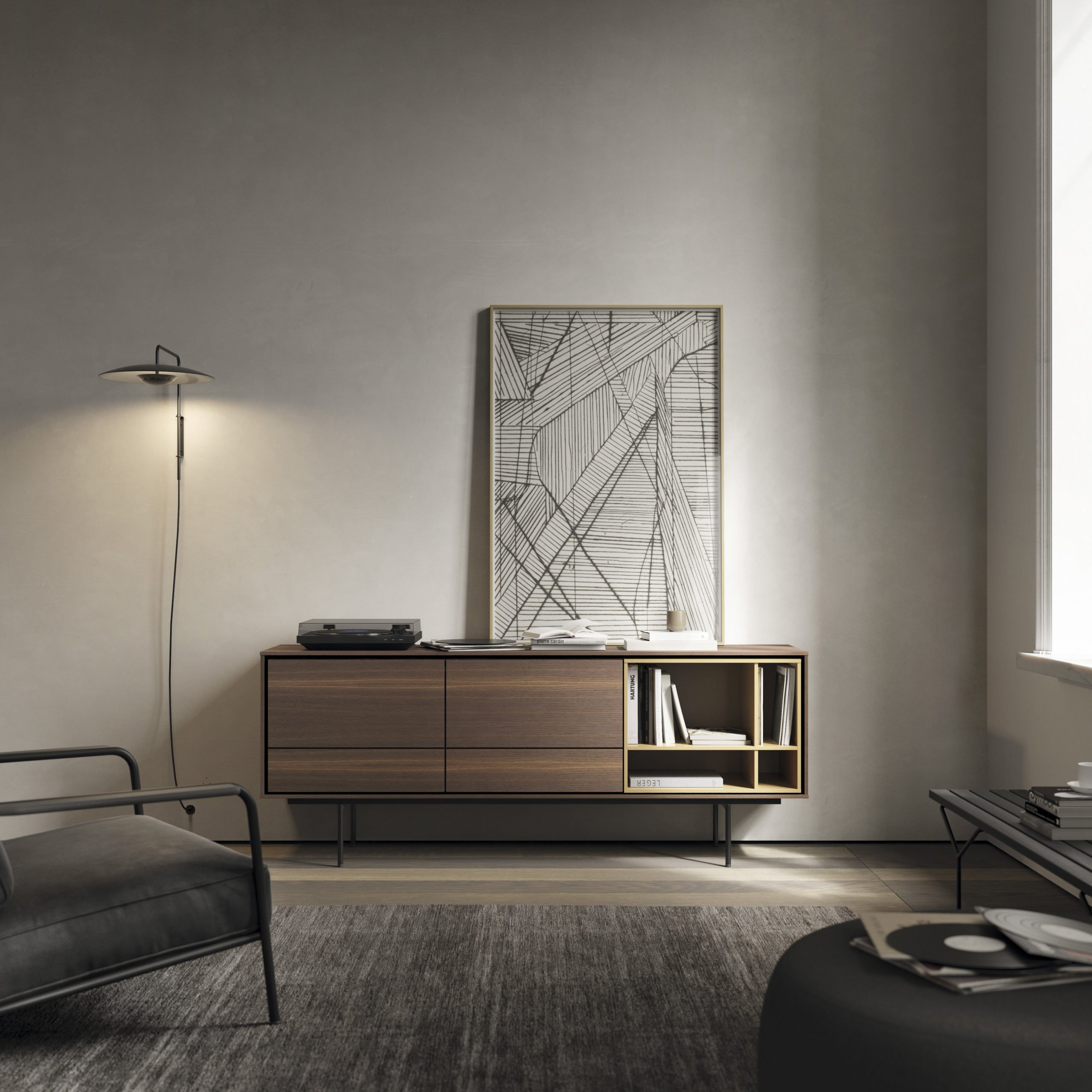Коллекция Ginger предлагает разнообразные осветительные приборы. Это подвесные, настольные (в том числе портативные), напольные и настенные светильники. Есть модели разных размеров, а также встраиваемые варианты. Их можно объединять в группы по 2–3 штуки. Для этого используется специальный аксессуар. Он подключается к одной распределительной коробке.