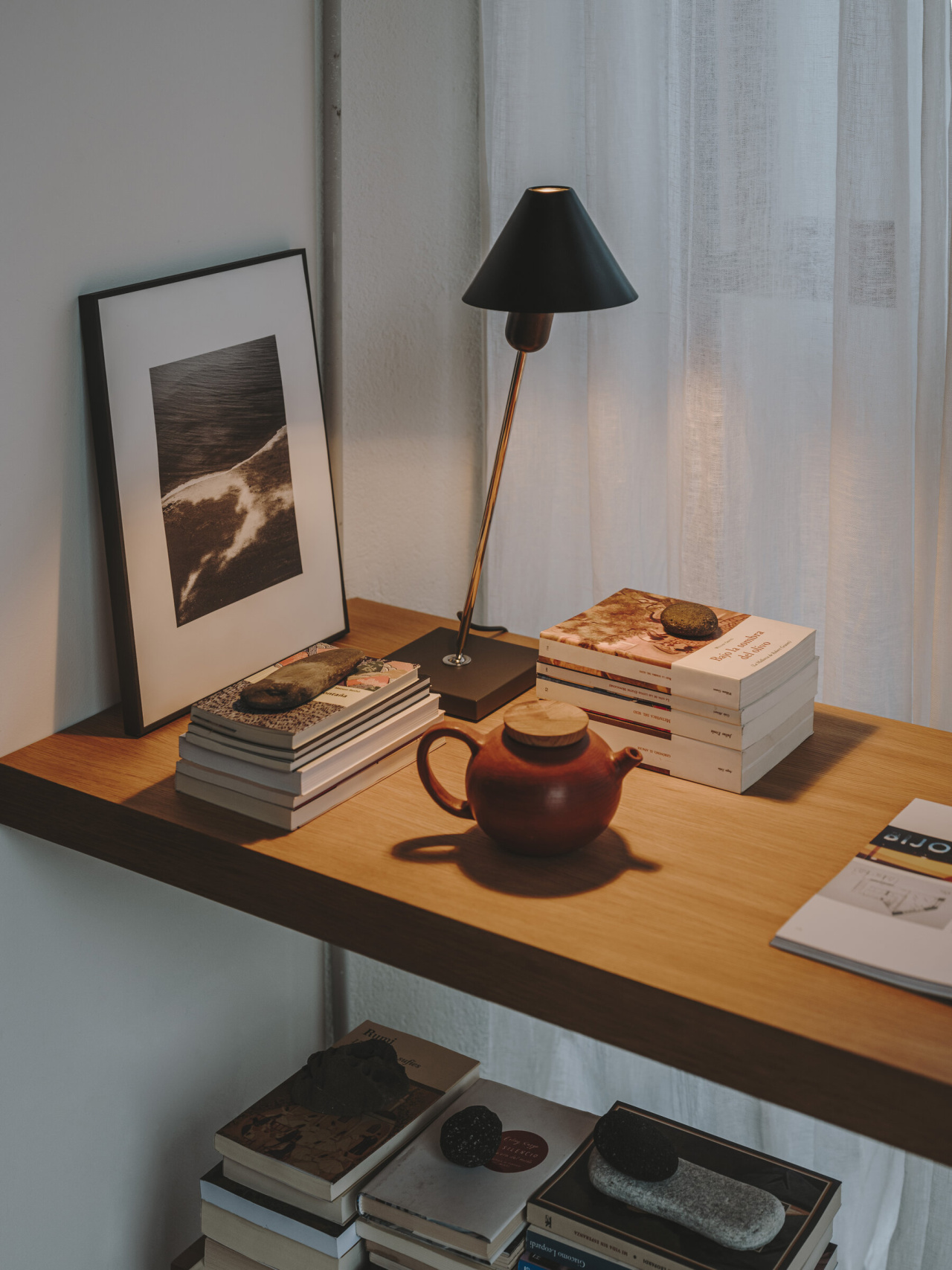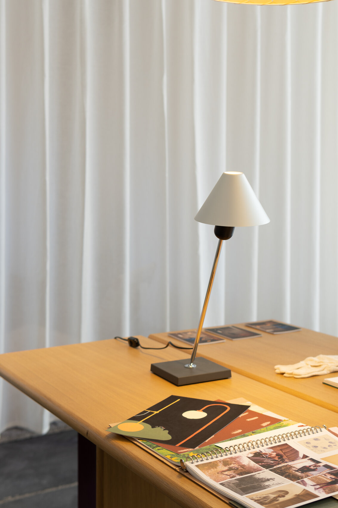 Главная особенность светильника Gira table — продуманная функциональность. Поворотный шарнир в основании и регулируемый абажур работают как единый механизм: они позволяют легко направлять свет туда, где он нужен. Это превращает светильник из простого источника освещения в гибкий инструмент, который подстраивается под любые задачи — будь то акцентная подсветка или создание мягкого рассеянного света.
