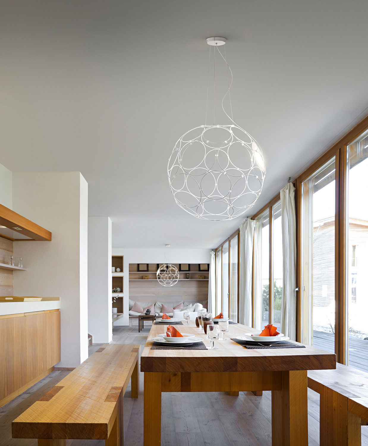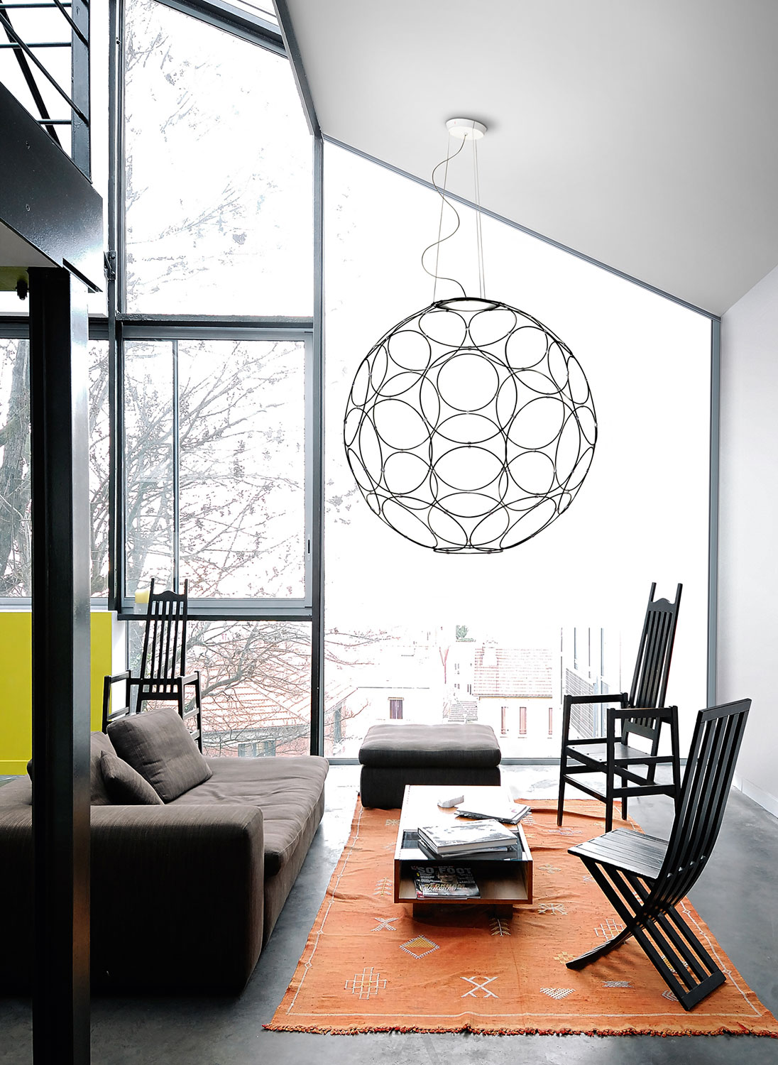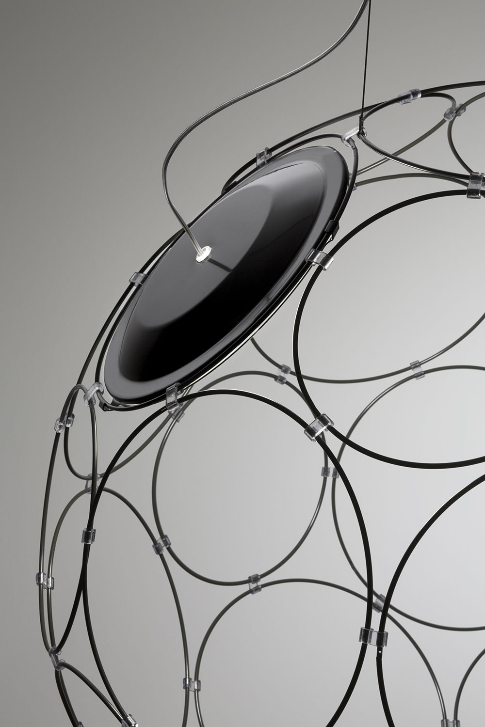 Giro - это светильник в форме сферы, очерчивающей собой пространство. Идею создателей удалось воплотить с помощью 32-х тонких металлических колец разного диаметра, скрепленных между собой. Источники света можно расположить в любом месте этой конструкции, в зависимости от Ваших пожеланий. Giro поставляется в миниатюрной упаковке и прост в сборке и монтаже.