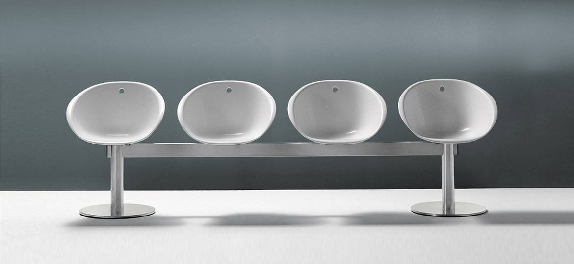 Коллекция Gliss включает в себя кресла, барные и обеденные стулья с округлой формой сидения. В семейство входят предметы с различными основаниями (салазки, дугообразные, крестообразные, стальная ножка, четыре ножки или на роликах) и множеством отделок. Основание скамьи Gliss изготавливается из стали: сатинированной или полированной. Сиденье и спинка выполняются из поликарбоната в белом или бежевом цвете. Также доступна модель с четырьмя сидениями. Детали о данной модели уточняйте у менеджеров или в PDF инструкции. n