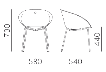 Коллекция Gliss включает в себя кресла, барные и обеденные стулья с округлой формой сидения. В семейство входят предметы с различными основаниями (салазки, дугообразные, крестообразные, стальная ножка, четыре ножки или на роликах) и множеством отделок. Ножки стула Gliss изготавливаются из стали: хромированной или покрытой лаком. Сиденье и спинка выполняются из поликарбоната в белом, бежевом или черном цвете. Доступна модель стула в обивке из искусственной или натуральной кожи, а также ткани в различных цветах. Также доступна подушка на сиденье из ткани или искусственной кожи. Детали о данной модели уточняйте у менеджеров или в PDF инструкции. n