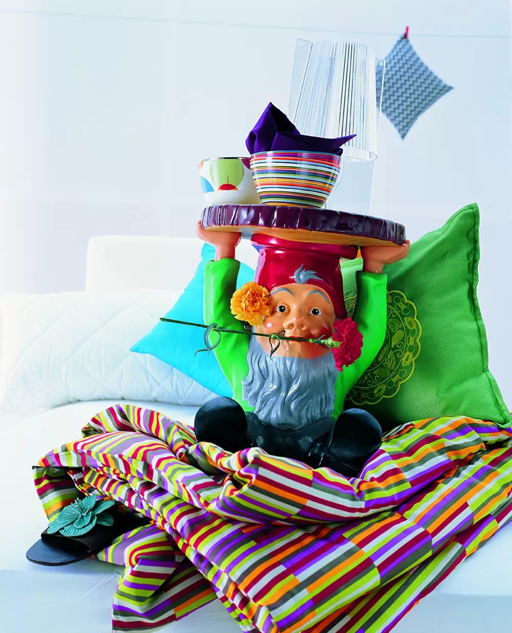 Аттила, Наполеон и Сан-Эспри – три табурета-столика, три харизматичных персонажа, поражающие своей самобытностью и нестандартным подходом. Эти табуреты и столики, наполненные юмором и симпатией, функциональность которых тоже не была оставлена без внимания, органично впишутся в любую обстановку без исключений. Плоские колпаки гномов, сделанные в форме окружности, могут использоваться и как вспомогательный столик, и как табурет.
